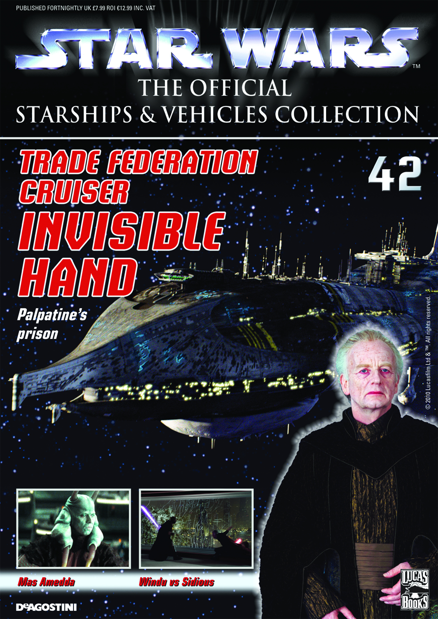 The Star Wars: The Official Starships and Vehicles Collection Magazine brings fans superbly detailed, painted metal models of the most amazing starships and land vehicles from George Lucas' mythic Star Wars films. Each comes with a copiously illustrated magazine that relates the history of the vehicle, its pilots or crew, and full technical specifications. Readers will also uncover information on the other fascinating craft from the Expanded Universe of the novels and comics, plus the inside story on the making of the films. Choose from Tie Interceptor (#15), Naboo N-1 Starfighter (#16), Hailfire Droid (#41), and Trade Federation Cruiser (#42).