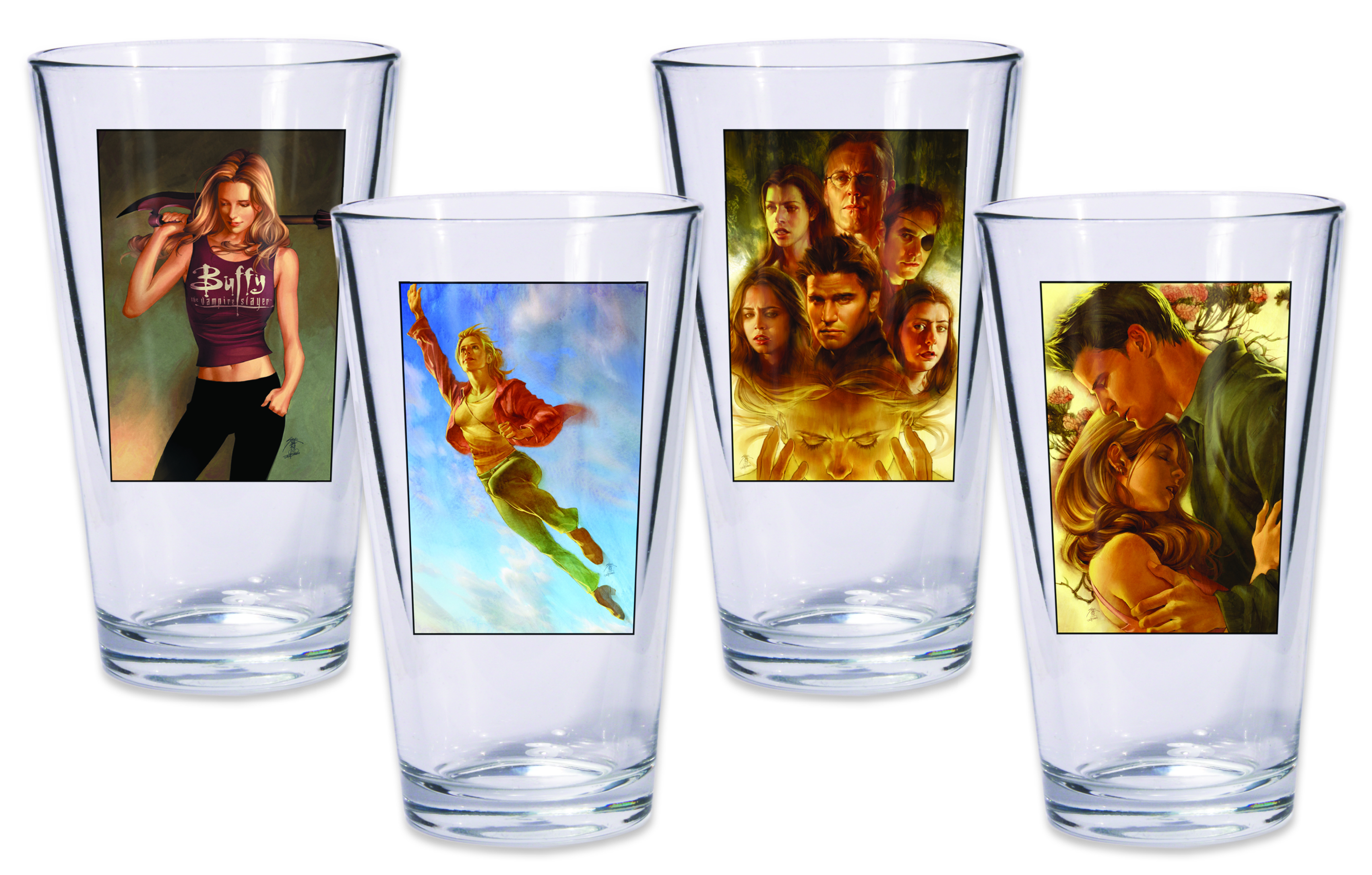 We have delved into the rich archive of Jo Chen's award-winning cover art to bring you the latest in our line of acclaimed accoutrements-a shiny new Buffy lunch box and a four-pack of 16 oz. glasses!