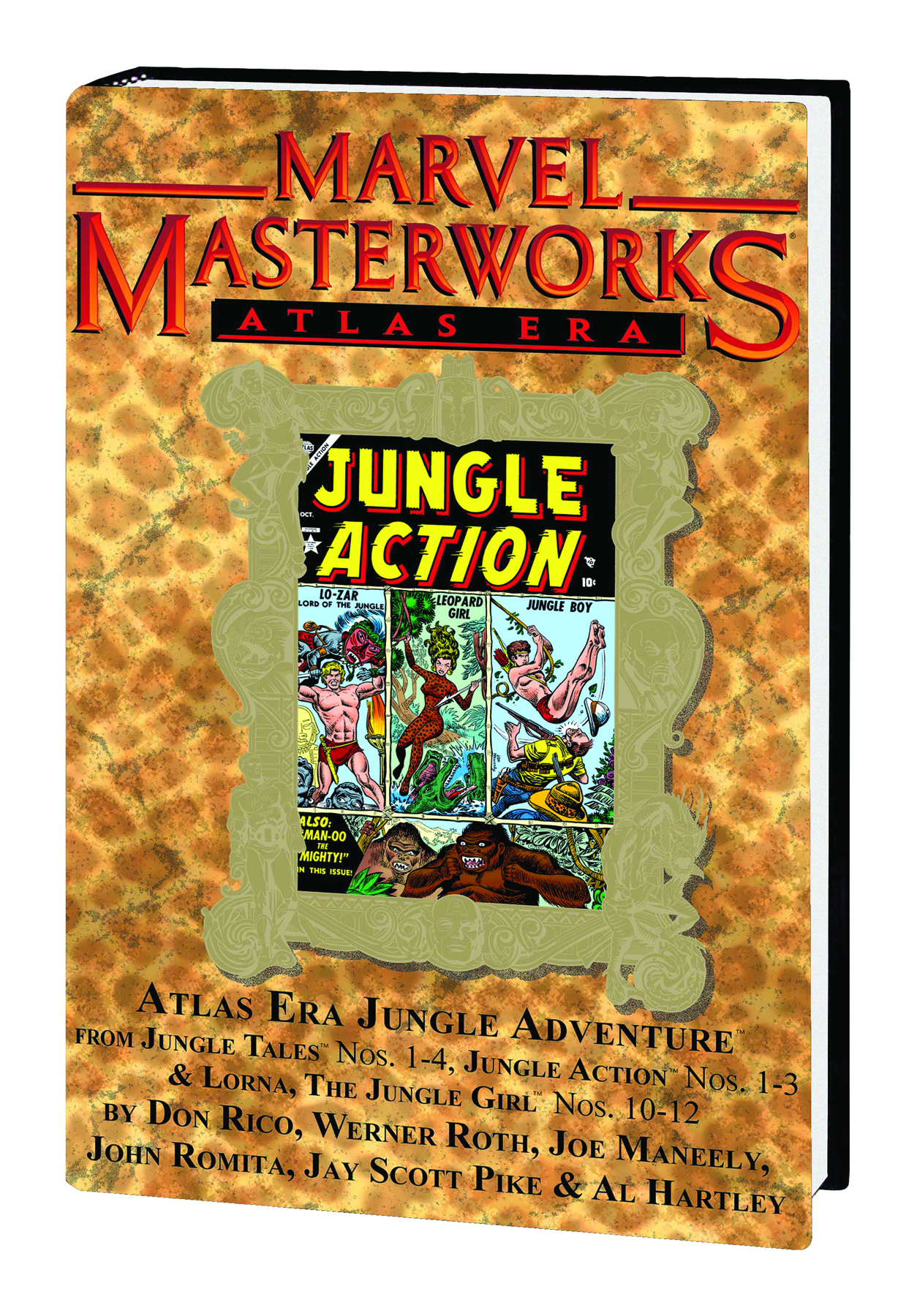 The jungle adventure MASTERWORKS are back - and this time, the whole gang's come along for the ride! In VOL. 1, you met the lithe and lovely Lorna, the Jungle Girl. Now, with VOL. 1, it's our pleasure to introduce you to the full cast and cadre of Atlas' amazing jungle adventurers! In the pages of JUNGLE TALES, animal trainer and movie stunt girl Jane Hastings ditches Hollywood and chooses the wild life to become the siren of the safari: Jann of the Jungle! Next come the trials of the young African chieftain Waku, Prince of the Bantu! Threatened by challengers to the throne and the legends of the jungle alike, he must follow the Fire God's path to lead his people. Then, Cliff Mason - legendary hunter, tracker and adventurer - travels the globe in search of the most dangerous game the jungle depths holds. JUNGLE ACTION features its own quartet of thrill-seekers: Lo-Zar, Lord of the Jungle takes on every menace that infiltrates his domain. From dinosaurs to Commies, he'll bring down the law of the jungle on them all! You'll also meet Man-oo the Mighty, in the unique stories of an ape's struggle to conquer his jungle kingdom, and leap from treetop to treetop with Jungle Boy, who with his tribe of monkey sidekicks seeks out all the action and excitement the jungle can offer! And lest we forget, there's also the one and only Leopard Girl! Bookish secretary Gwen may go unnoticed - but when she dons the skins of Leopard Girl, every creature in the jungle is ready to fall into the heart of darkness! Collecting JUNGLE TALES #1-4, JUNGLE ACTION #1-3 and LORNA, THE JUNGLE GIRL #10-12.