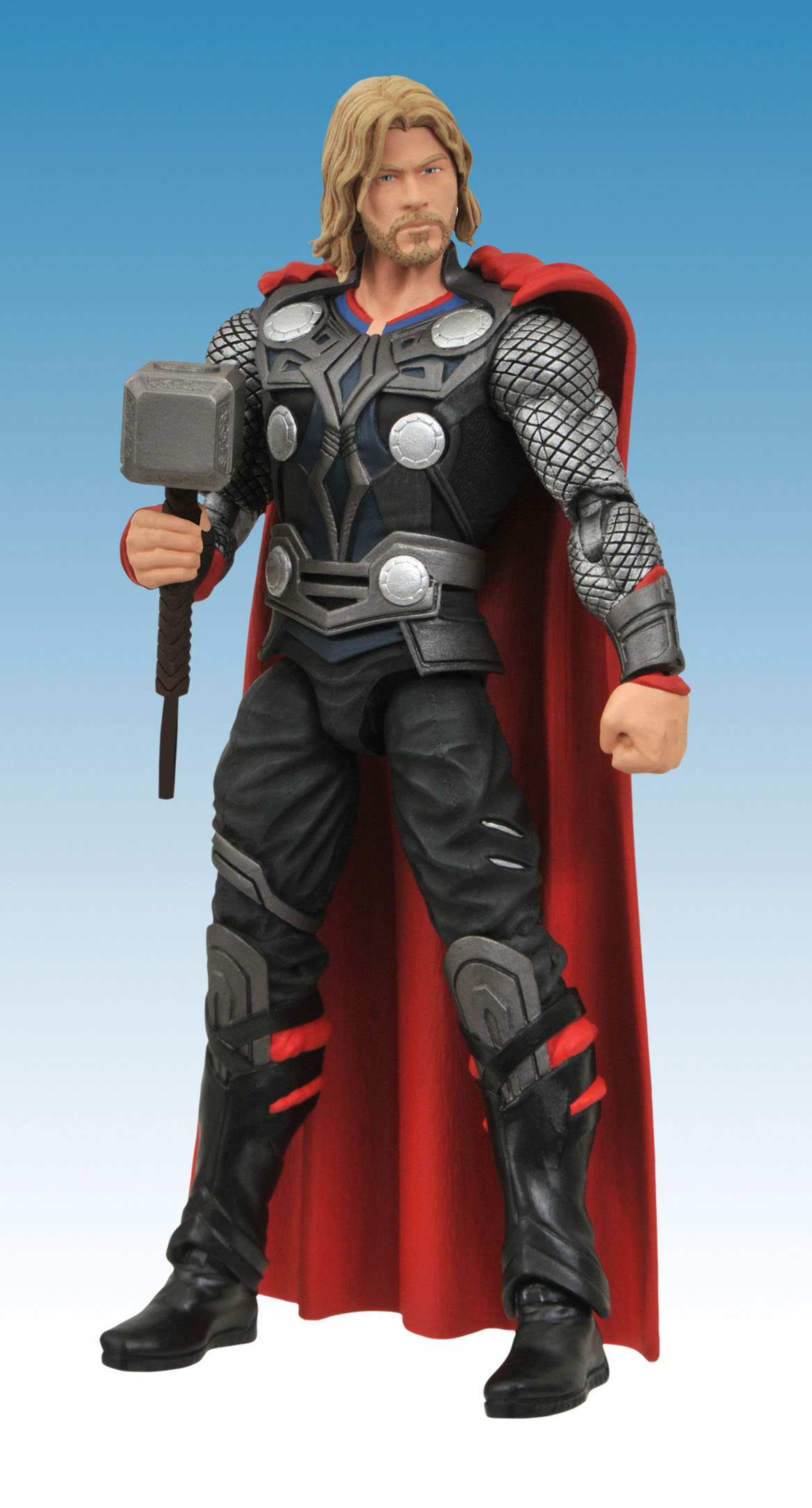 A Diamond Select Release! Sculpted by Gentle Giant Studios! The best-selling Marvel Select line is proud to add another of the Marvel movie franchises to its lineup! This time the movie Thor makes his Marvel Select debut. Based on the likeness of actor Chris Hemsworth from the upcoming May 2011 blockbuster, this movie-accurate Thor figure includes Marvel Select's standard 16 points of articulation. As an added bonus, the figure comes packaged with a display stand based on the mythical rainbow bridge that can be combined with the base from the Loki movie figure to form a diorama!