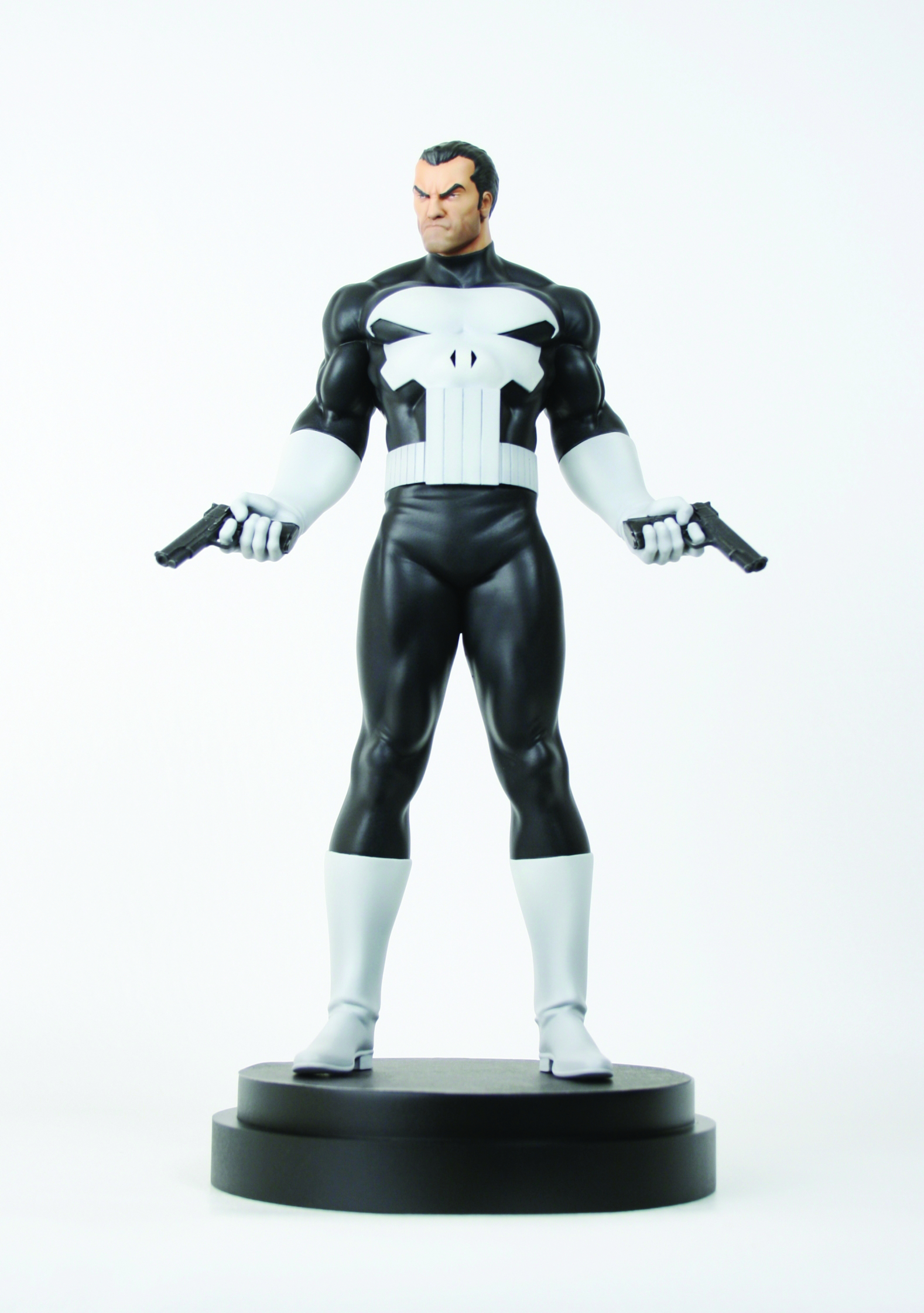 A Bowen Designs Sculpt! Vietnam veteran Frank Castle found himself in the unintended crossfire of New York City's criminal empires. When his family was murdered, Castle vowed a one-man war on crime as the Punisher. Taking a vigilante's approach, Castle instilled fear into the underworld, and the white skull face on his black suit became well-known - and well feared. Standing 12" tall, the Punisher is sculpted by Khurram Alavi.