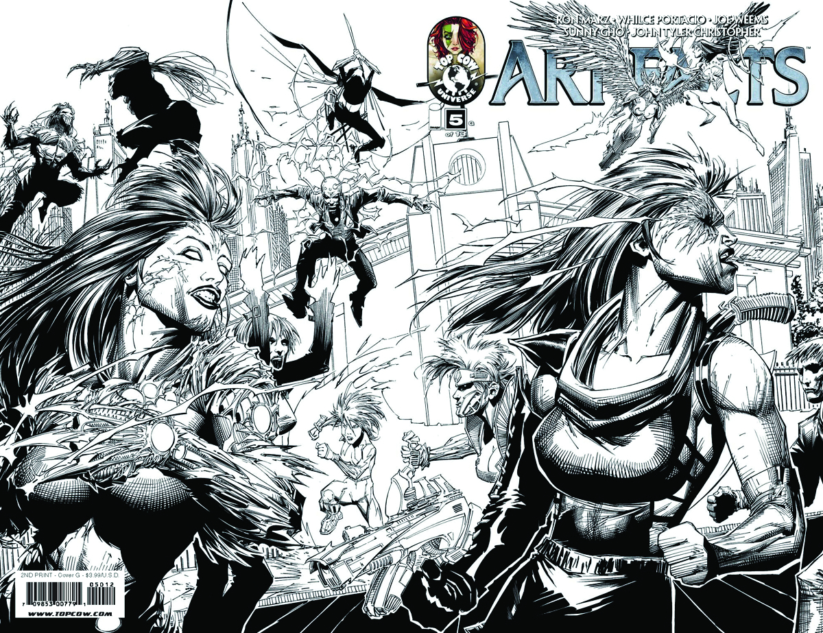 From Image Comics/Top Cow Productions. Your Second Chance to Jump In! The first chapter of Artifacts concluded with a shocking cliffhanger and the second chapter shows no sign of letting up! With all of the players on the board, the antagonist manipulating the Bearers of the Artifacts moves to complete his plan for utter annihilation of the world. But how do the members of Cyberforce fit into the machinations of the supernatural? From Top Cow Universe architect Ron Marz (