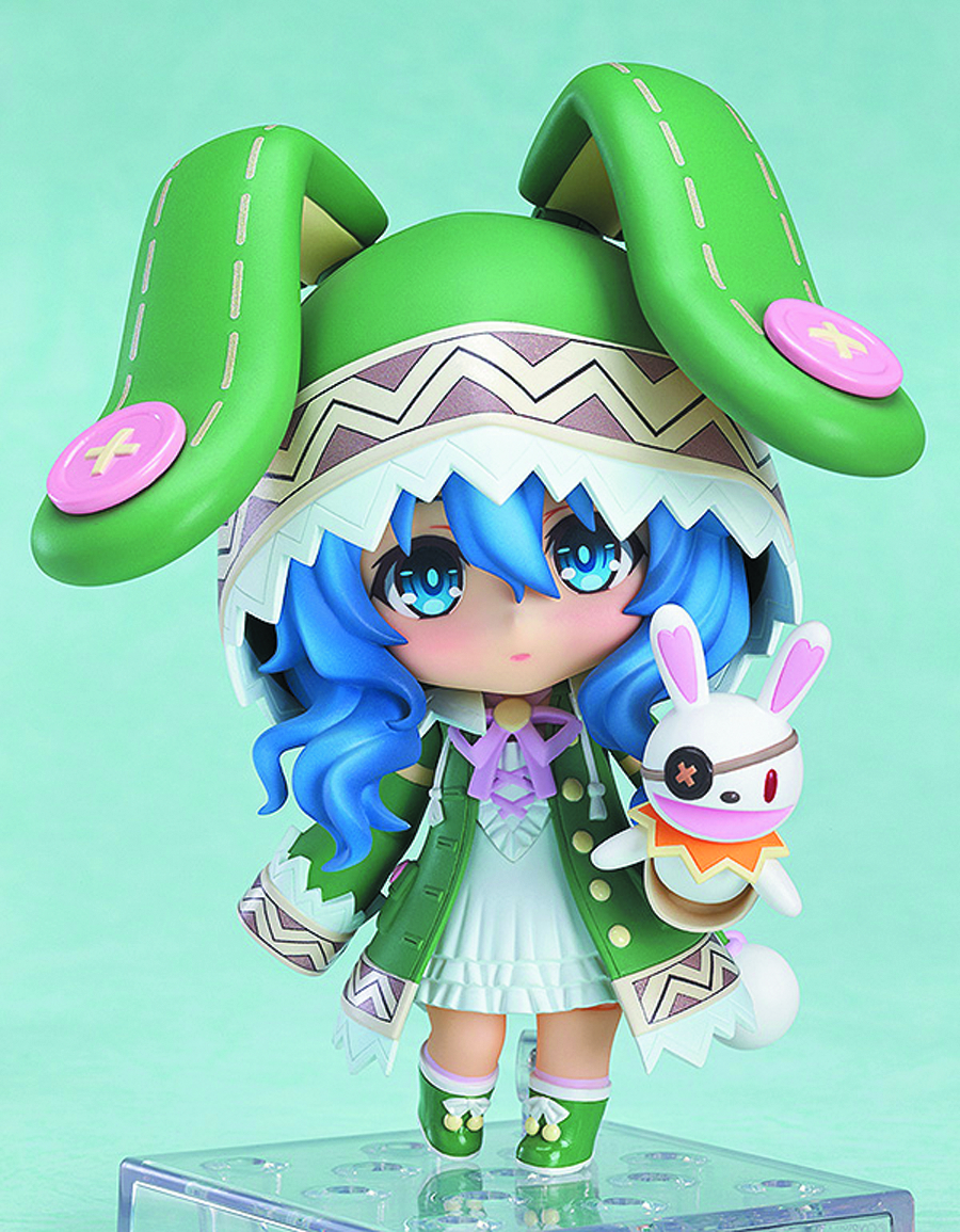 Date A Live! comes a Nendoroid of the spirit, Yoshino! She comes with three expressions including her standard face, a frightened crying face as well as a blushing chibi face! Optional parts include her puppet "Yoshinon," as well as a chibi snow rabbit sized version of Zadkiel. The trademark large ears on her hood are fitted with joints for all sorts of different poses, and her hood and coat can also be removed using an alternate upper body part, allowing you to display her in a one-piece dress instead!