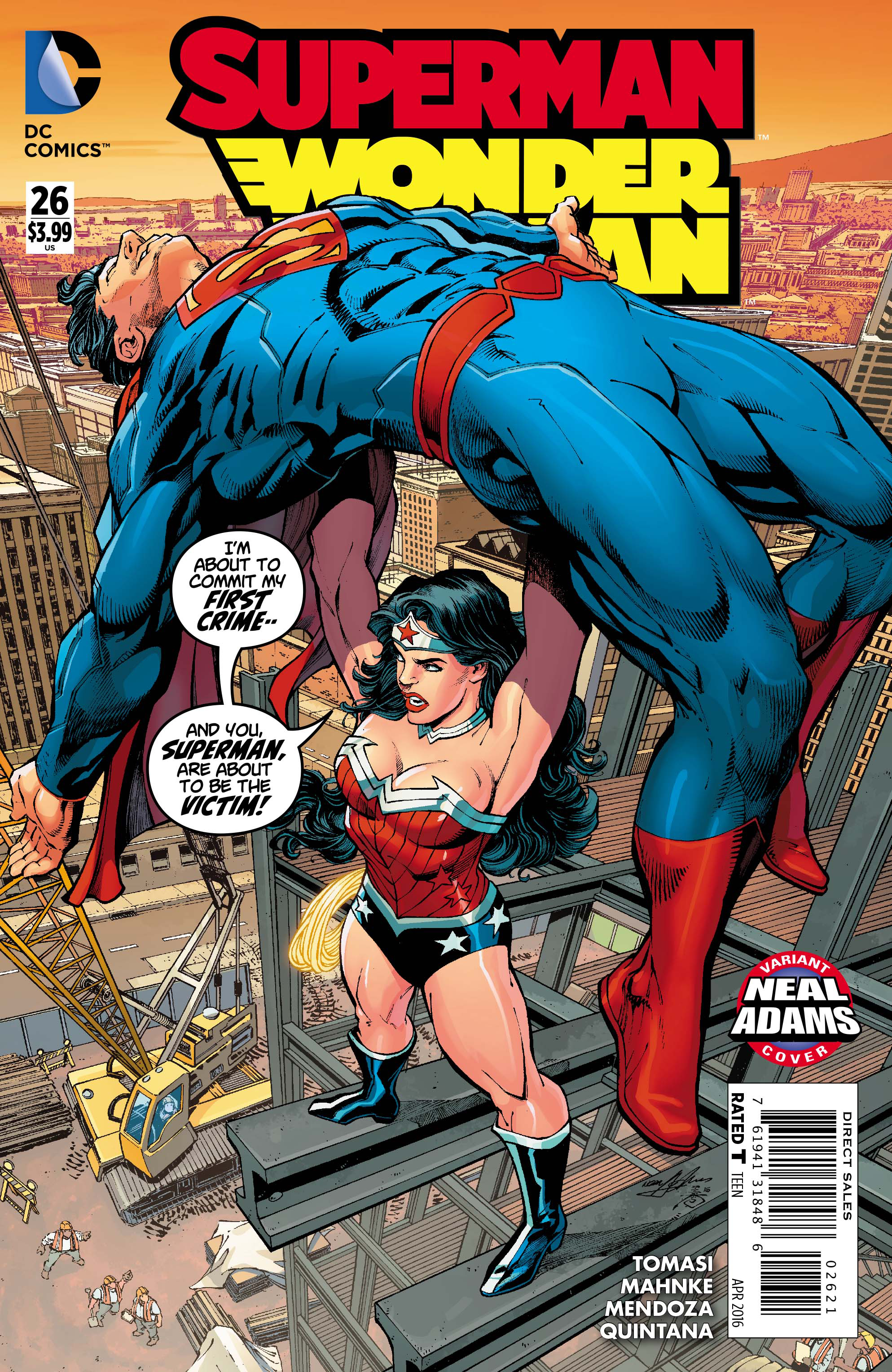 "Savage Dawn" continues! Suffering a terrible loss, Wonder Woman comes to the aid of the Kryptonite-charged Man of Steel to face the terror of the twins of Vandal Savage!