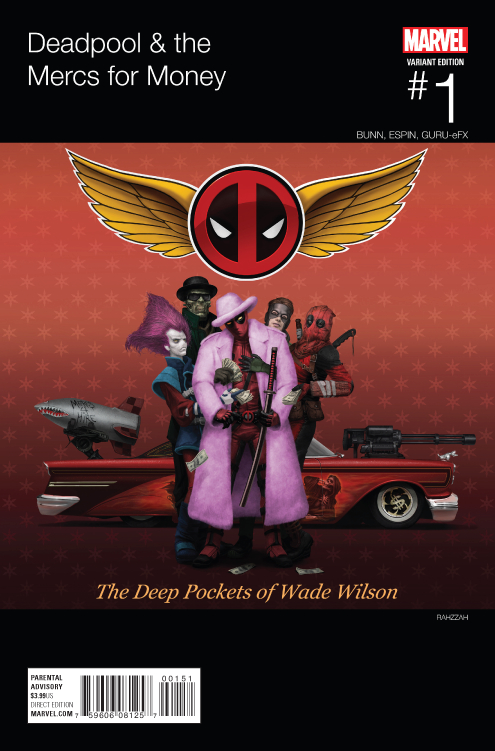 Deadpool might be an Avenger now, but he's also got his own private team of mercenaries...the legally-cleared-to-be-called MERCS FOR MONEY! Got a problem you can't solve on your own and a pile of money you'd like to be rid of? Just call Deadpool, Stingray, Massacre, Solo, Foolkiller, Terror and Slapstick and watch as that problem is shot, stabbed, eviscerated, pulverized and generally made bloody!