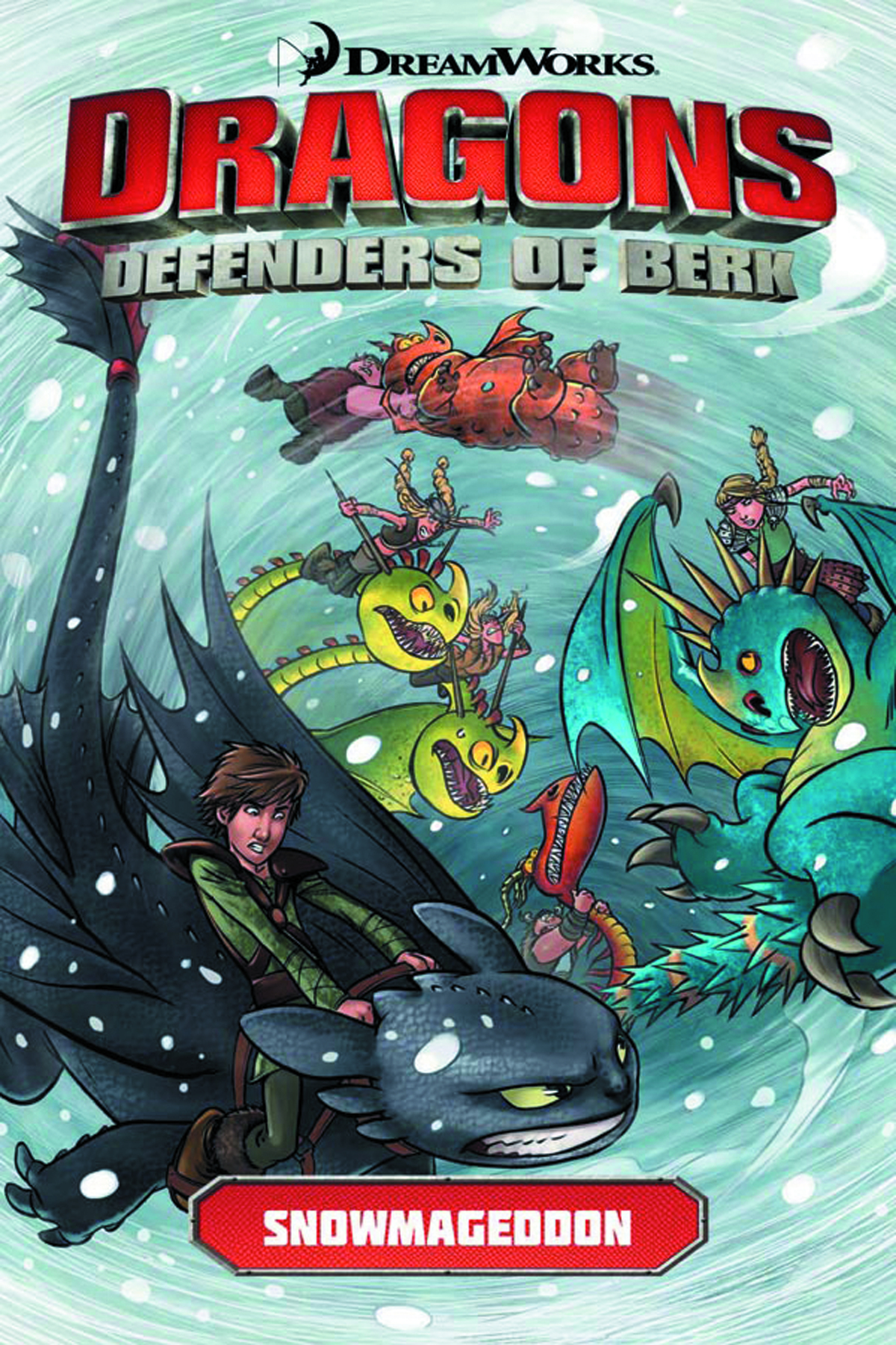 Take off on a brrrilliant new adventure with the members of the Dragon Training Academy! In "Snowmageddon," the dragons and riders of Berk set out to help a Viking settlement, but huge blizzards create great dangers for them. And the cause of these storms is even scarier! Plus, secrets from Gobber's past are revealed. Also, some dragon-sledding fun in a special back-up story called "Thaw Fleet"! With a back-up story by