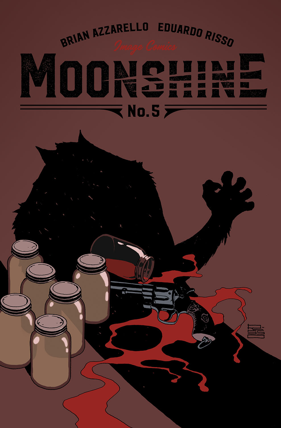 "MOONSHINE," Part Five-In the penultimate issue of the opening story arc, torpedo Lou Pirlo is juggling two femme fatales and a bloodthirsty werewolf... and about to discover the true meaning of the expression "love bites."