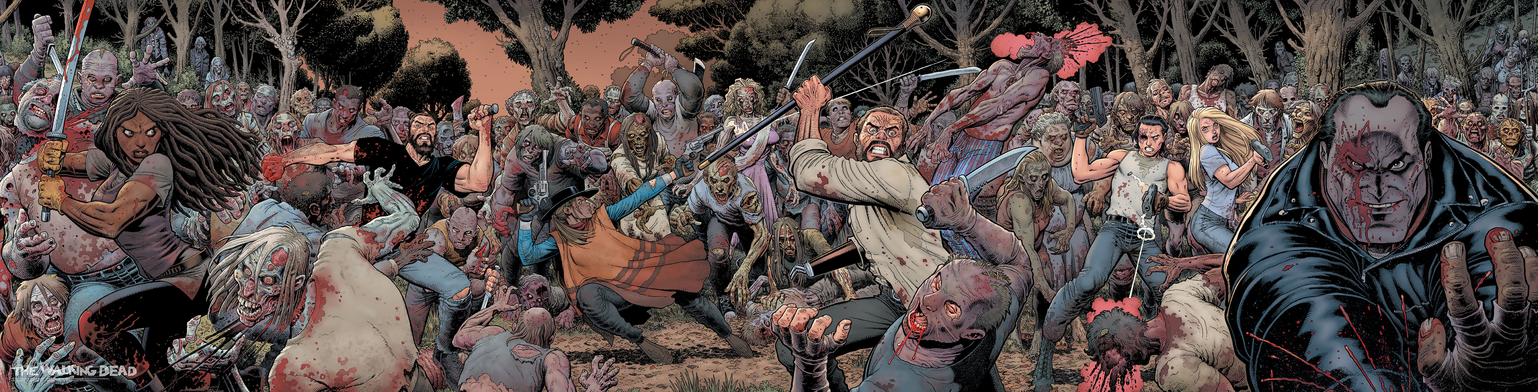 This all-new THE WALKING DEAD poster, by legendary artist Arthur Adams and colorist Nathan Fairbairn, features Rick Grimes and his army at war with the Whisperers.