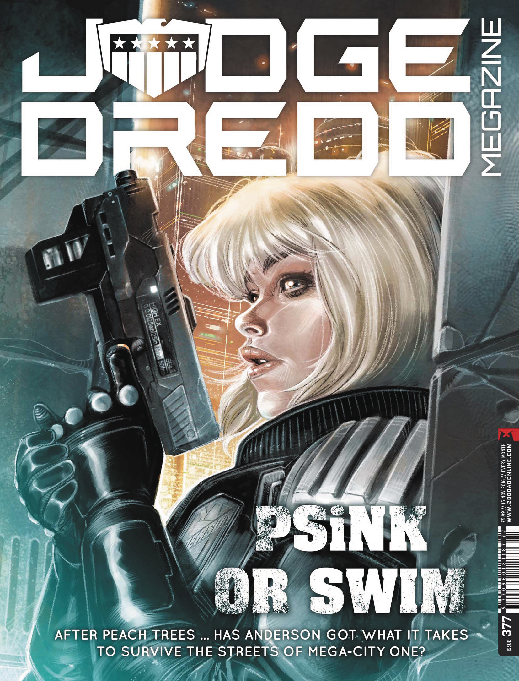 More action and adventure in the future-shocked world of Judge Dredd! Dredd rescues kidnapped teens in the concluding part of "The Rubicon" by Michael Carroll and Ben Willsher; Marshal Metta Lawson struggles to keep a town under control in