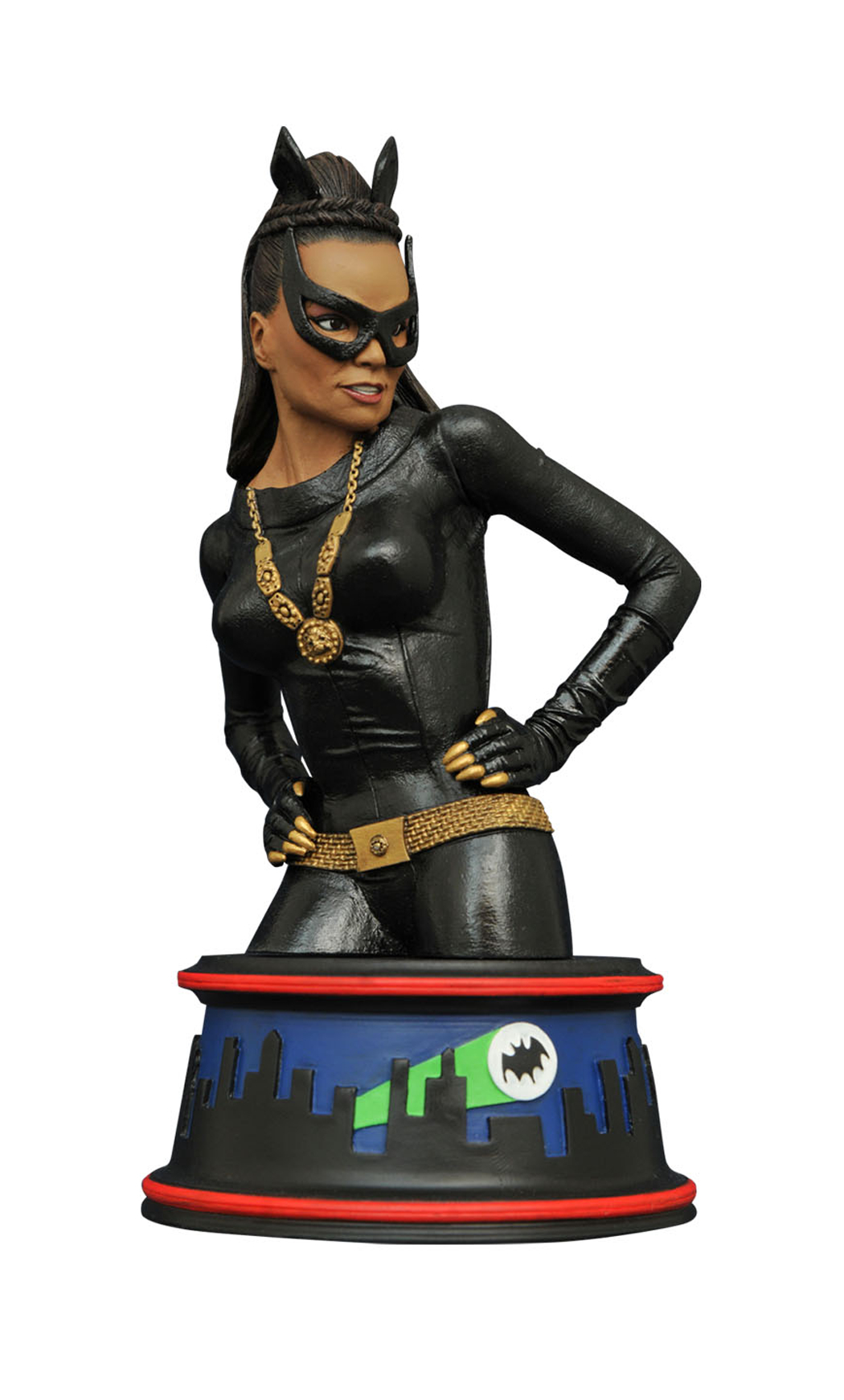 A Diamond Select Toys Release! This tiger has changed its stripes! Like many of Batman's classic foes from the 1960s TV series, Catwoman underwent several metamorphoses over the run of the show, and in Season 3, she was played by sultry singer Eartha Kitt! This 6-inch-tall resin bust depicts Kitt as Catwoman, perched atop a colorful base inspired by the show's animated opening credits. It's the purr-fect addition to your Batman Classic TV Series bust collection! Packaged in a full-color box with a certificate of authenticity. Designed by Barry Bradfield! Sculpted by Jean St. Jean!