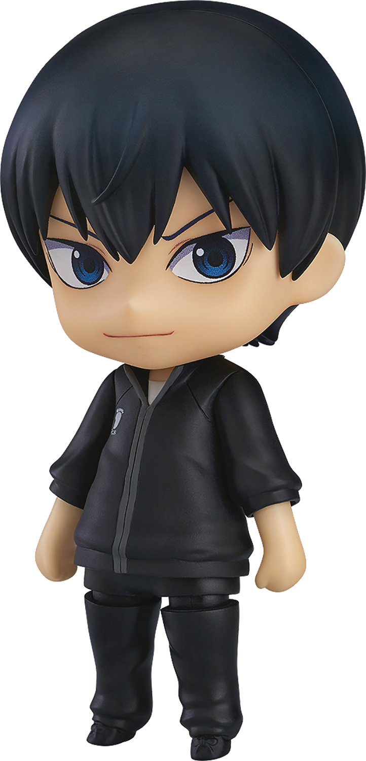 Haikyu!!, the popular volleyball anime and manga series, comes an updated version of Nendoroid Tobio Kageyama wearing his sports jersey! He comes with a smiling expression filled with confidence, and the unique way that he wears his jersey has been faithfully preserved on the Nendoroid. Optional parts include some GunGun Milk and the bag he uses when going to the volleyball club. This version also includes a round base with a volleyball pattern as well as a background sheet based on the Sakanoshita Store!