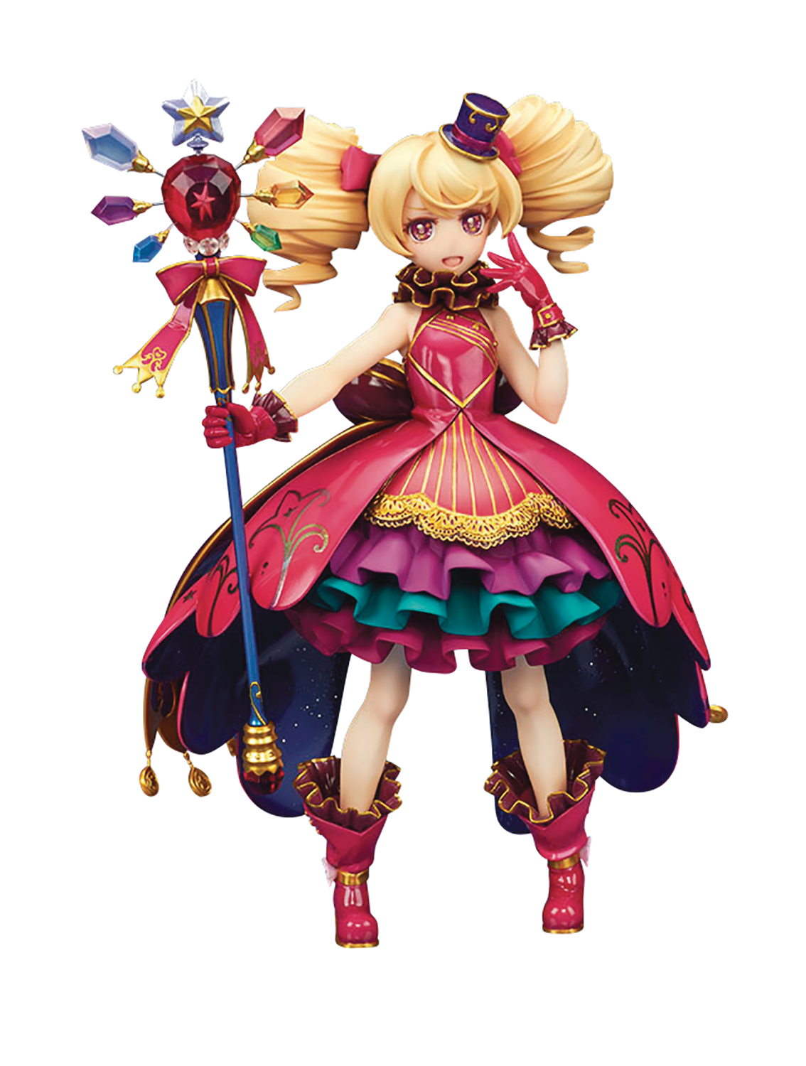 Otoca Doll is made into an 8 5/8" tall figure! Her fearless smile with big sparkling eyes is so mischievous. The gorgeous costume is finely sculpted to the lace on the hem, and its metallic color and pearl paint make the dress colorful from every angle. The "Star Ruby Rod" in her hand is made with large gems using clear parts, and various expressions can be enjoyed with different lights.