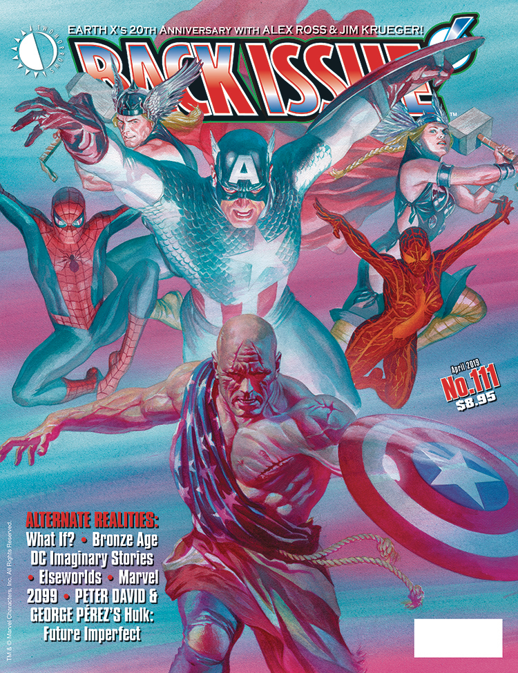 Back Issue #111 is the "Alternate Realities" issue, cover-featuring the 20th anniversary of Alex Ross and Jim Krueger's Marvel