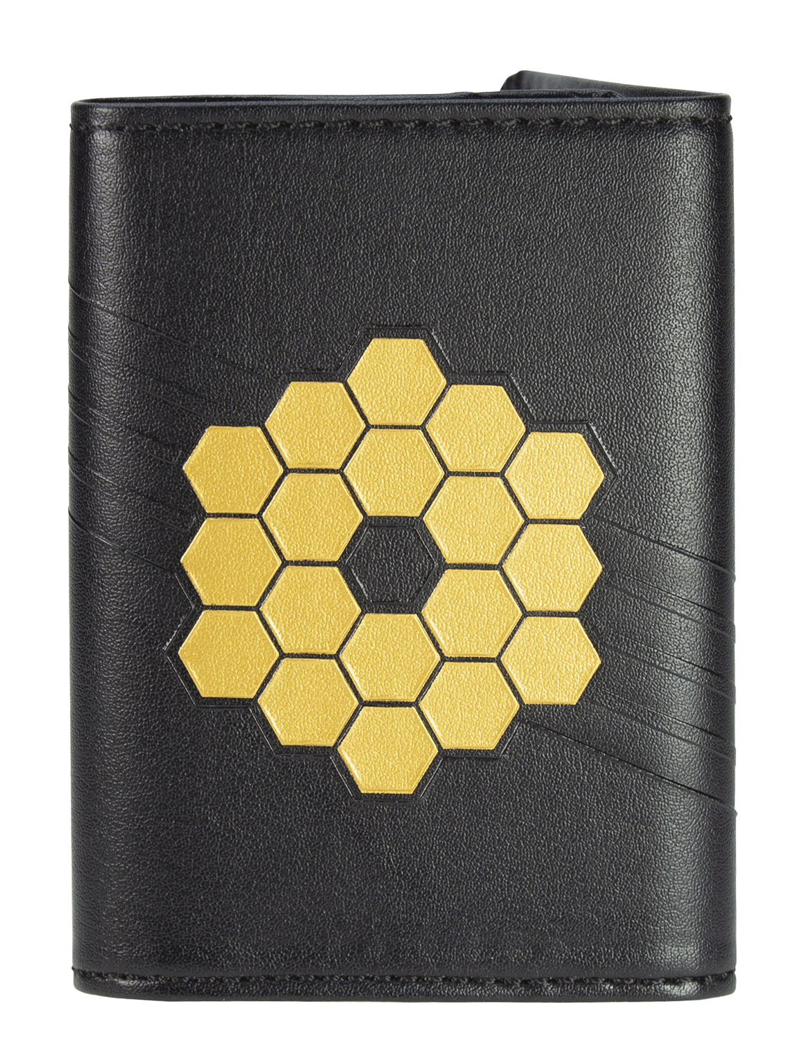 NASA's next great space telescope, the James Webb Space Telescope, will launch in a few years and provide and unparalleled view of the universe. This Tri-fold faux leather wallet, officially approved by NASA, features the hexagonal honeycomb of the Webb's mirror array.