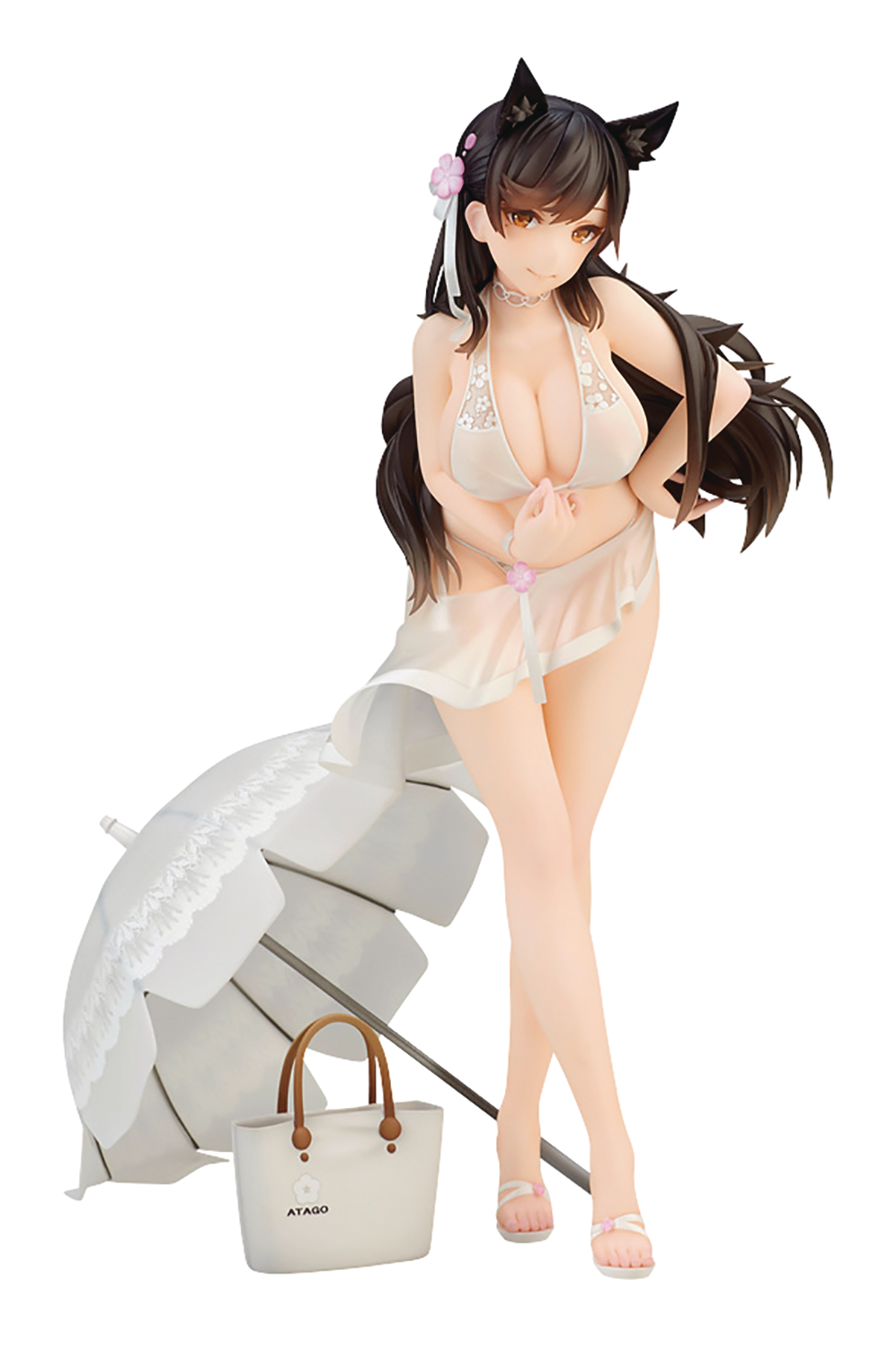 Azur Lane takes a break from the ocean battlefront to enjoy a day at the beach! The figure is based on Atago's Midsummer March illustration from the game, and every detail of the artwork has been brought to life for fans to enjoy. Not only have they captured her entrancing smile and pose, they've used clear plastic parts to recreate the same semi-translucent effect in her fabric as you see in the illustration, and even brought out her parasol and bag to recreate the scene!