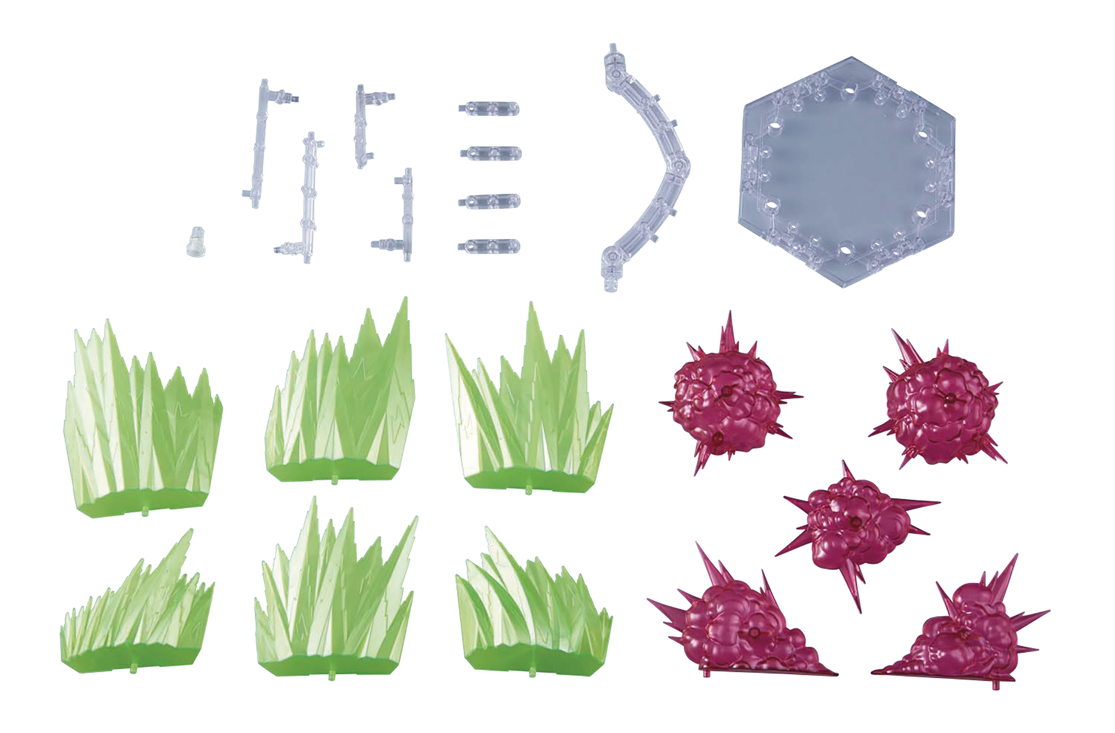 From Bandai Hobby. Replicate fiery bursts and explosions to engulf your characters and mecha to add depth to your displays! Pairs great with Figure-rise, GunPla and other Bandai Hobby products. Set includes action base, joint parts x4, small prop parts x2, large prop parts x2, pedestal joint, molding parts x3, and instruction manual.