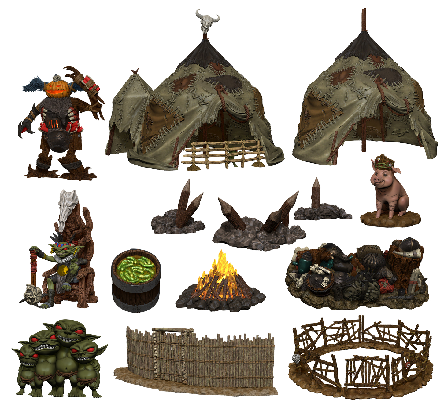 The Pathfinder Battles Goblin Village Premium Set includes the following items*: