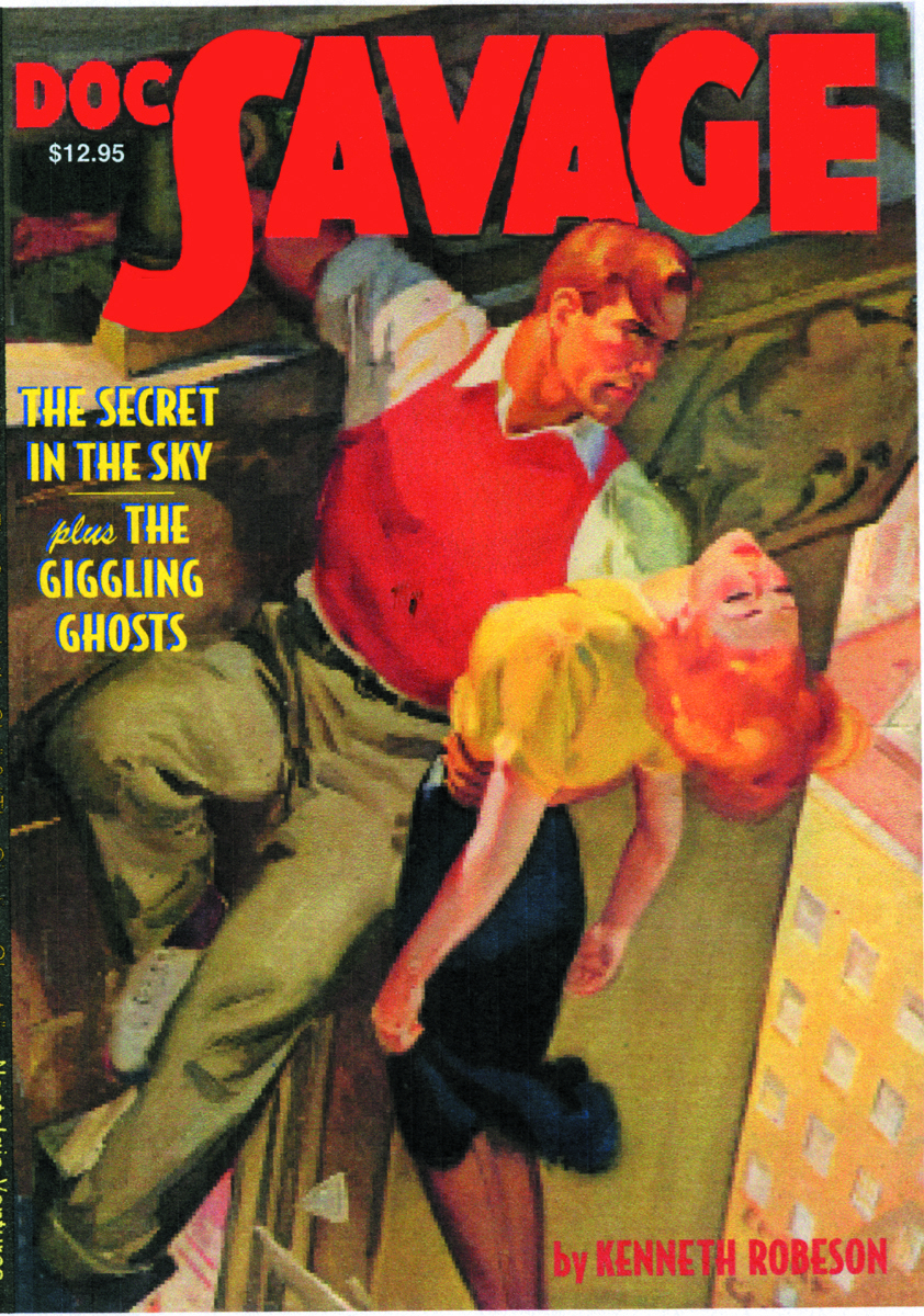 The 75th birthday of the pulp era's greatest superhero continues with two more epics from the Golden Age of Pulp Fiction! In "The Secret in the Sky," Doc Savage journeys to San Francisco to investigate the murder of a Nobel Prize-winning scientist. What is "The Secret in the Sky," that can bring ruin to an entire continent? Then, in "The Giggling Ghosts," the Man of Bronze and his aides investigate a toxic outbreak of uncontrollable hilarity that is causing New Jersey residents to literally laugh themselves to death! This collector's item pulp reprint also features the original color pulp covers by Emery Clarke and Walter Baumhofer, interior illustrations by Paul Orban, and historical articles by Will Murray, author of seven