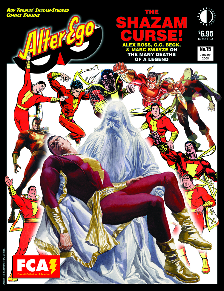 Shazam! proposal from Alex Ross! Plus, there's C.C. Beck on "The Death of a Legend!" Also, there's an engrossing interview with Golden Age artist Marv Levy, featuring art by Bernard Bailey, Carmine Infantino, Mac Raboy, Charles Sultan, Howie Post, Dan Barry, Mort Meskin, and more!