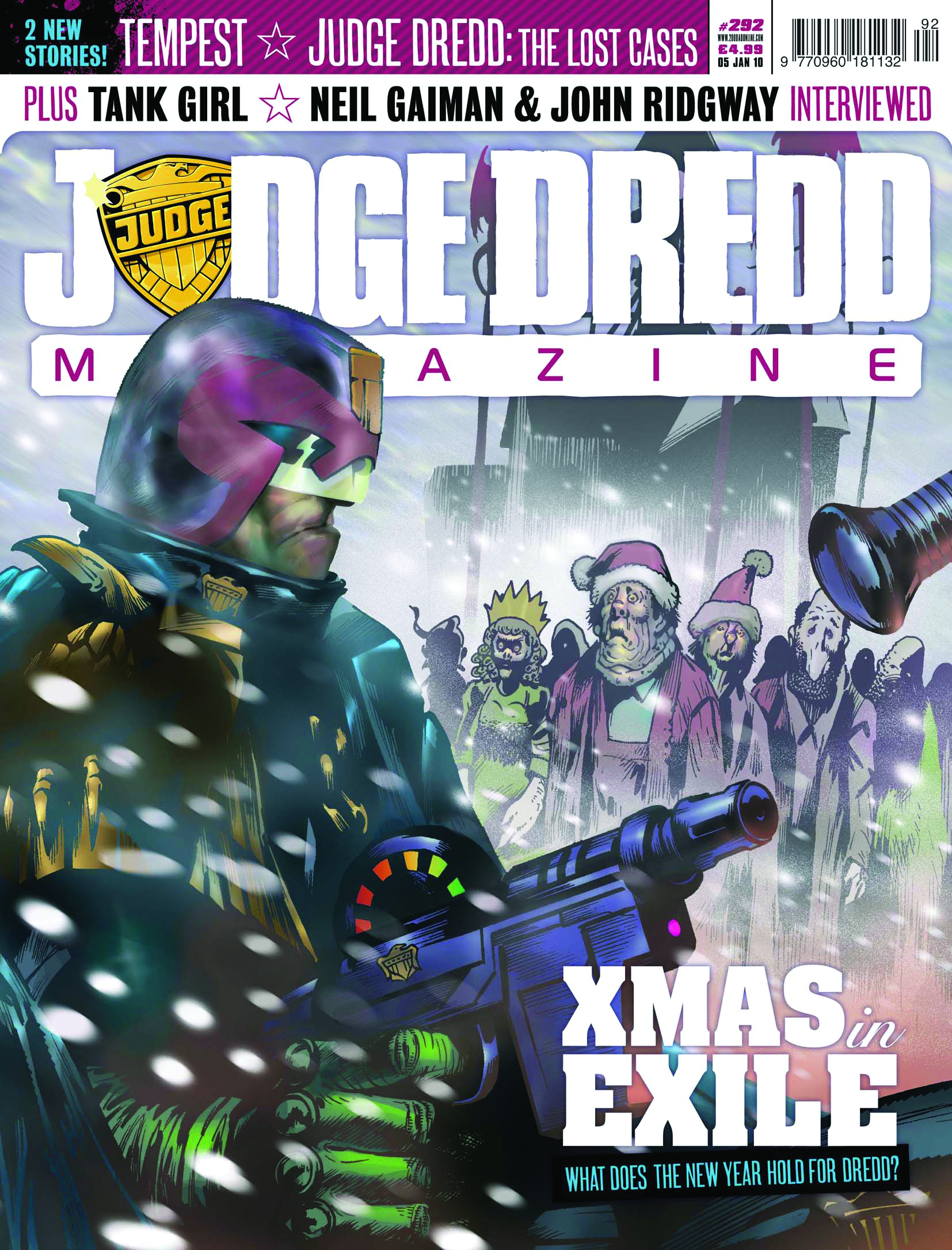 More pulse-pounding excitement from the world of Judge Dredd! The future cop has to deal with a Cursed Earth prophet, it's the final face-off between Tempest and Deathfist, and one crazy citizen tries his hand at democracy in "Judge Dredd: The Lost Cases." All this, plus interviews, reviews, and more. In the bagged graphic novel this month, "Judge Dredd: The Raptaur" by Alan Grant and Dean Ormston.
