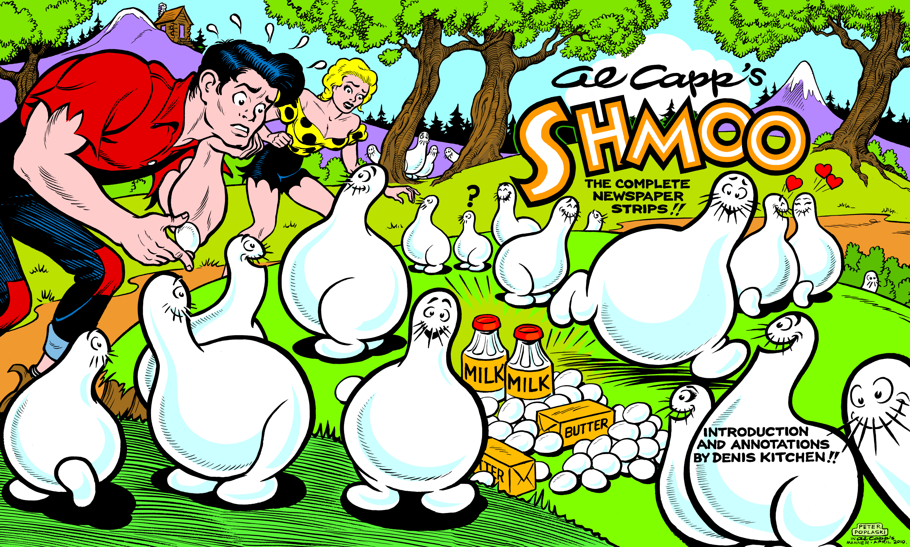 First appearing in Al Capp's Li'l Abner comic strip in August 1948, the oddly shaped (and happily edible) Shmoo creature became an overnight phenomenon, spawning an unprecedented merchandising frenzy in the late forties and fifties. As part of the Dark Horse Archives series, ALL Shmoo newspaper strip appearances and storylines are being collected for the first time ever in a deluxe, oversized hardcover! In addition to every weekly and Sunday Shmoo newspaper appearance from 1948 to 1976, this collection also features rare Al Capp photographs and Shmoo illustrations, a look at some Shmoo-centric products from its marketing heyday, a brand-new Shmoo wraparound cover by renowned illustrator Pete Poplaski, as well as an introduction and story annotations by certified Shmoo-ologist Denis Kitchen!
