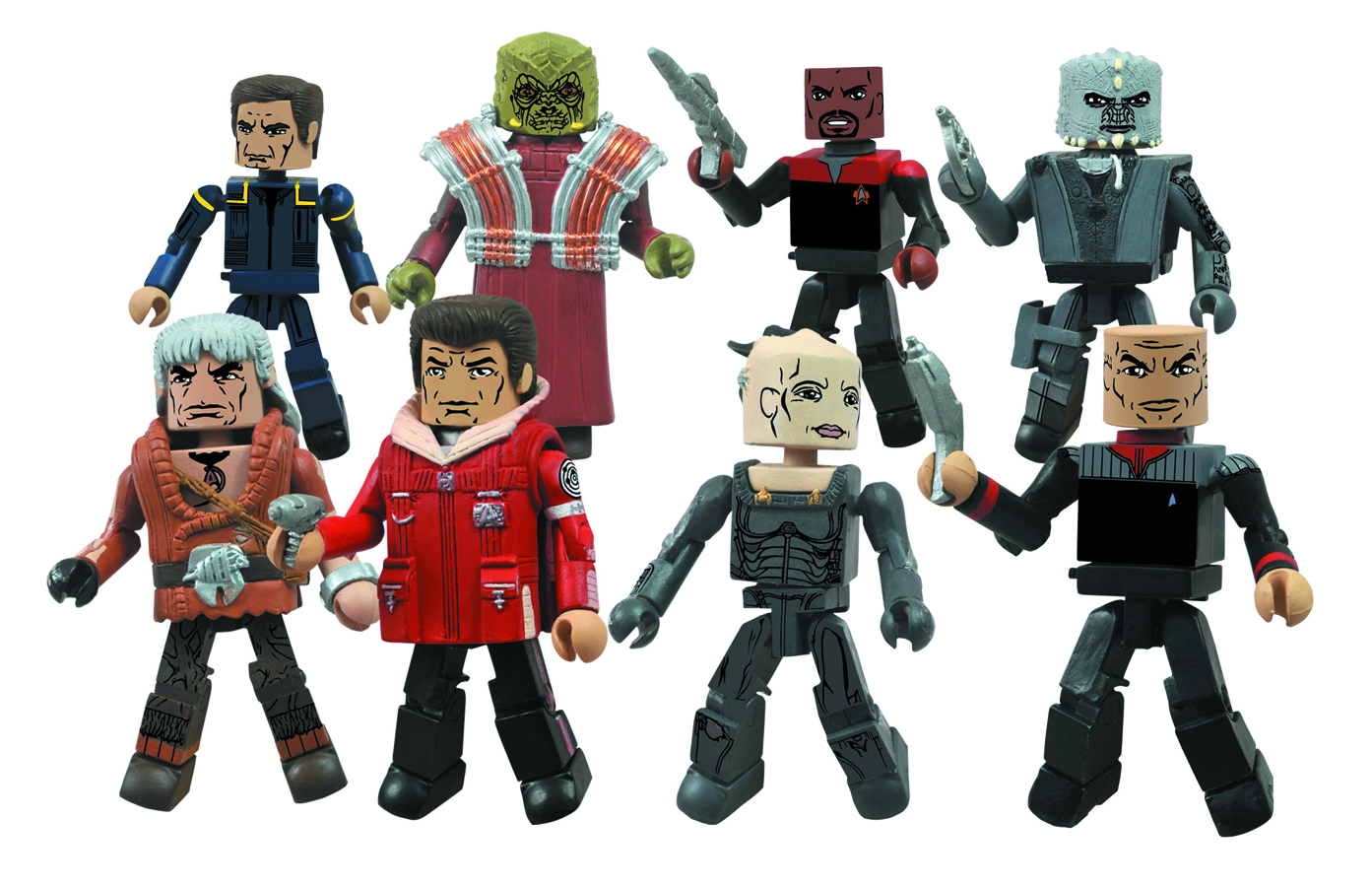 A Diamond Select Release! Designed and Sculpted by Art Asylum! Star Trek Minimates return! With the USS Enterprise getting the Minimates treatment later this year, DST is bringing back Star Trek Minimates with a full assortment from across two TV shows and two movies! The first series of two-packs includes Star Trek II Capt. Kirk and Khan, First Contact Capt. Picard and Borg Queen, Season 7 Capt. Sisko and Jem Hadar and Capt. Archer and Xindi from Enterprise! Each Minimate stands 2 inches tall with 14 points of articulation and a variety of removable and interchangeable parts and accessories. All of these Minimates will only be available on the specialty market, so order boldly!