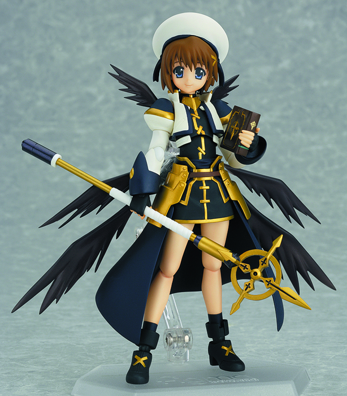 Magical Girl Lyrical Nanoha The MOVIE 2nd A's comes a figma of Hayate Yagami in her knight armor! Her primary device, "Schwertkreuz," is included, as well as the Tome of the Night Sky in both a closed and open form. An alternate head part is included to display her in the Unison state, and a special clear sheet is included to recreate the magical circles that appear when she uses magic. She comes with three expressions: a gentle smile, a face with closed eyes and a glaring expression for the Union state. An articulated figma stand is included, which allows various poses to be taken.