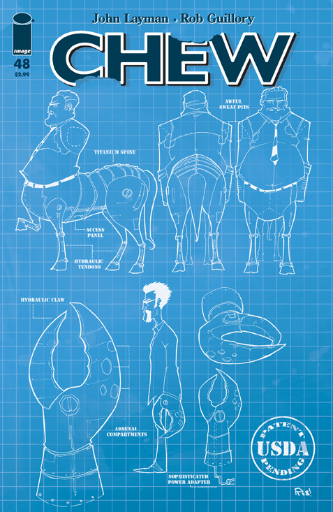 We can't show you the CHEW #48 cover because it's too spoiler-y, so here's an unfinished picture of Caesar Rob started for the CHEW #43 cover. NOT ACTUAL COVER!