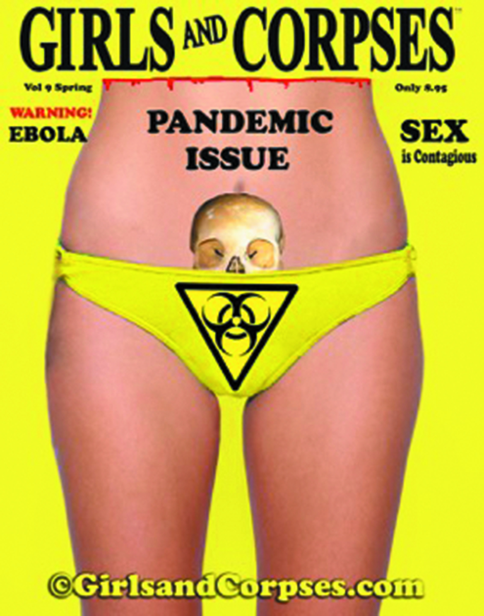 Girls and Corpses Spring Outbreak and Pandemic issue will put you in a panic as we explore the deadly diseases that will end life on earth: Ebola, The Plague, The Flu and The Kardashians. Exclusive Interviews with makeup FX Wizard/actor Tom Savini; artistic sick savant Joe Coleman; horror hostess Ivonna Cadaver, famed metal band Bloodbath; Fifty Shades Of Green; artist Madame Jojo; and Max Hardcore. Stay healthy and read
