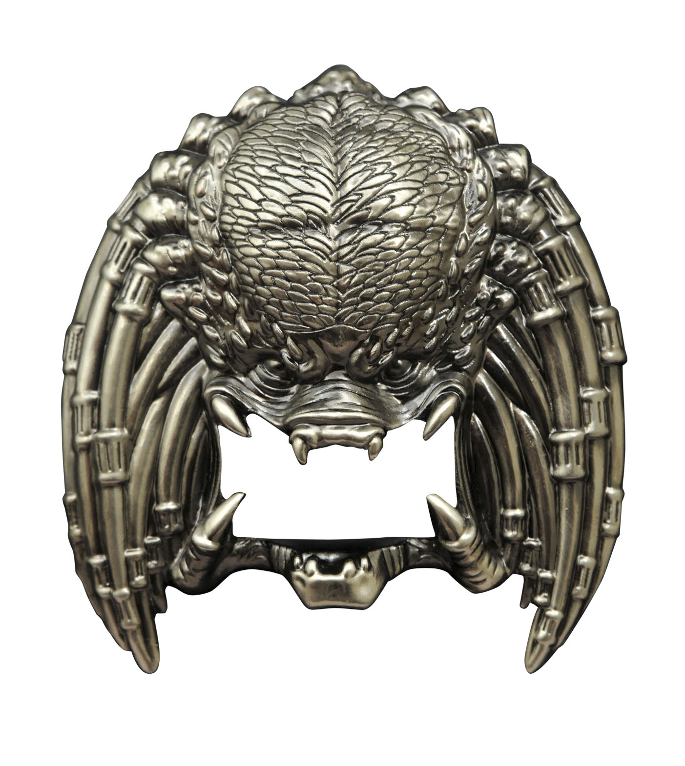 A Diamond Select Toys release! Predators love the heat, and nothing beats the heat like a cool, refreshing drink. Whether you're slogging through an impenetrable jungle or hiding out in a Los Angeles barrio, use the mandibles on this metal Predator bottle opener to pop the cap off of your favorite bottled beverage. Plus, magnets on the back will hold it fast to your refrigerator or trophy case, so you'll never have to "hunt" for an opener again! Packaged in a full-color slipcase.