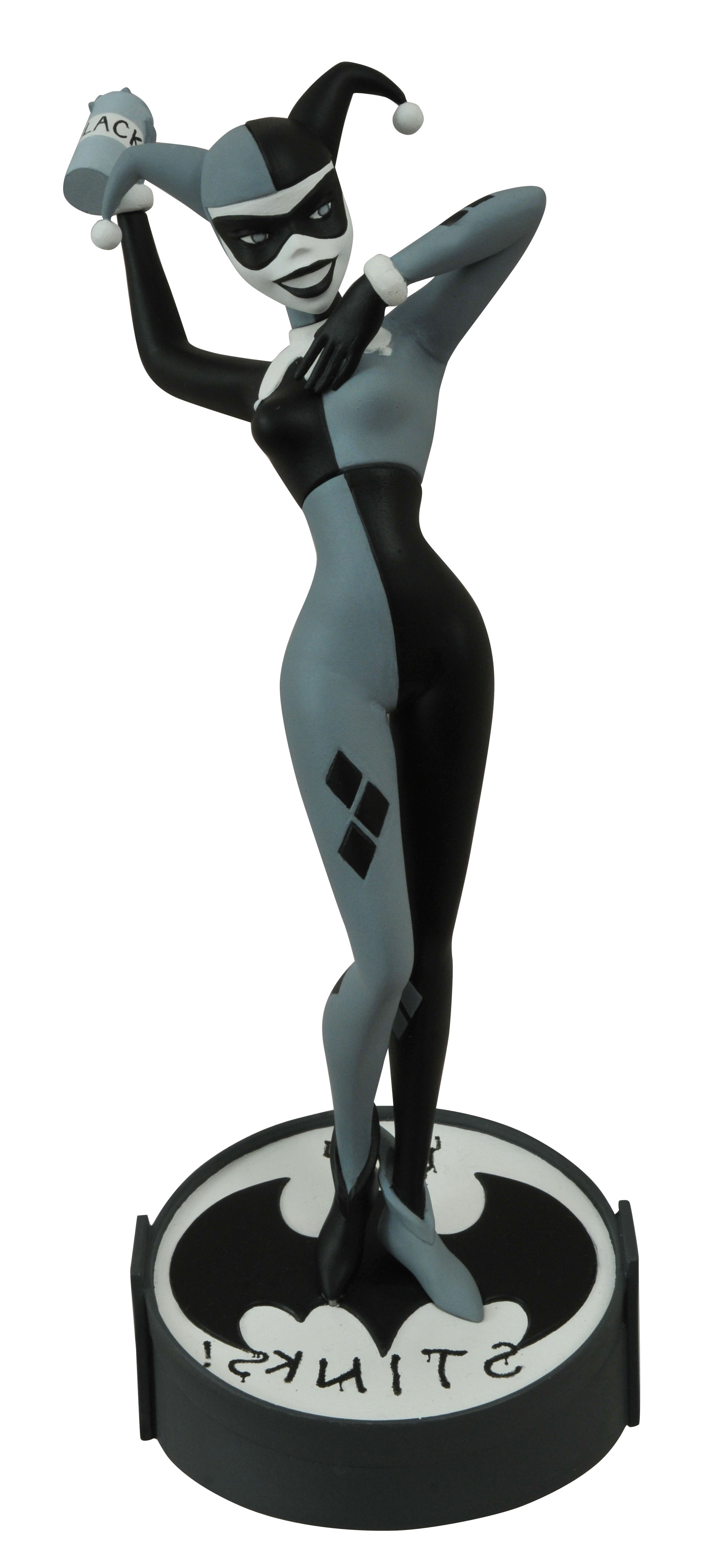 Batman: The Animated Series with a line of statues, and Comic-Con kicks the line off with an exclusive variant version of Harley Quinn! Based on her appearance in the episode "Almost Got 'Im," this statue captures the Joker's partner-in-crime defacing the Bat-signal in two of her favorite colors: black and white! This 9-inch black-and-white statue is crafted from PVC plastic, and comes packaged in a full-color window box. Sculpted by Steve Varner Studios. Limited to only 4,000 pieces!