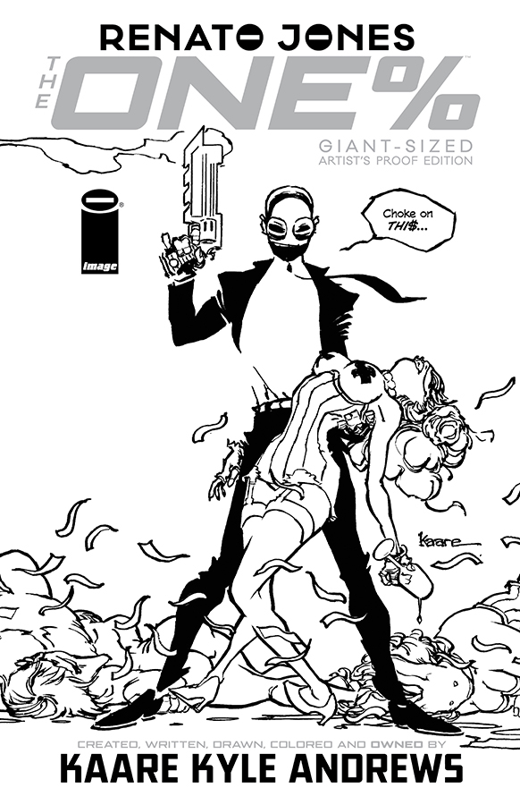 Presenting the first issue of RENATO JONES: THE ONE% in oversized black and white splendor, this special Artist's Proof Edition showcases creator KAARE KYLE ANDREW'S dynamic inks in 11x17.