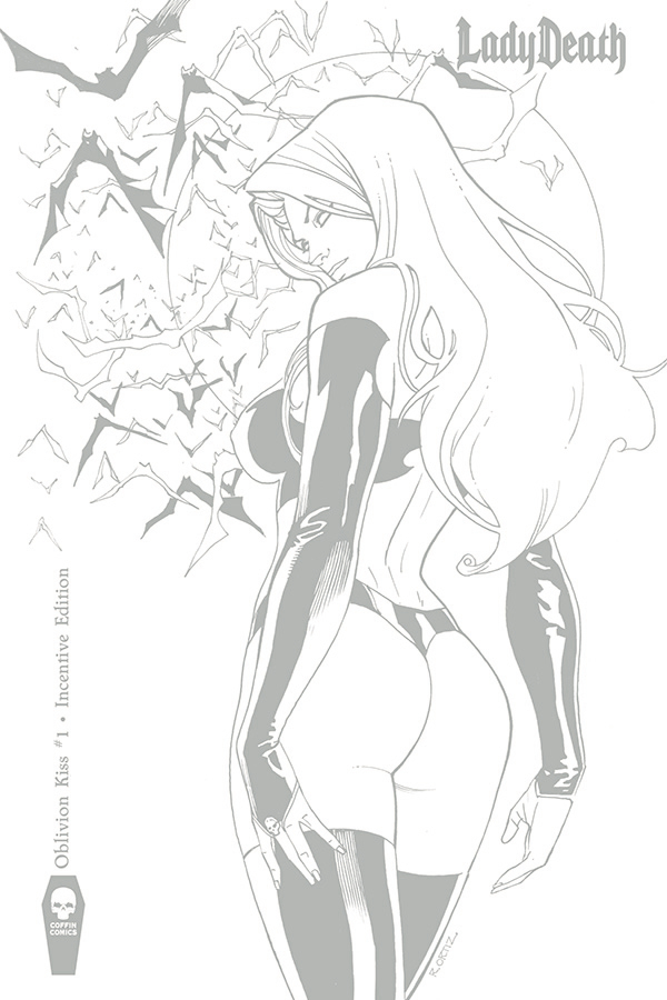 To save her beloved steed Vassago from eternal torment, Lady Death is drawn the wasteland City Siduri where lust isn't a sin, it is a way of life. Instead she encounters the demon sorceress Demonika, is put under an ironclad spell and made to be a plaything to be auctioned off to the highest demon bidder. Is all hope lost? C'mon, it's Lady Death! Lady Death: Oblivion Kiss #1 is a 48-page all-new square bound graphic novel that builds on the mythology creator Brian Pulido has began in Chaos Rules #1, Damnation Game #1, and Oblivion Kiss #1.