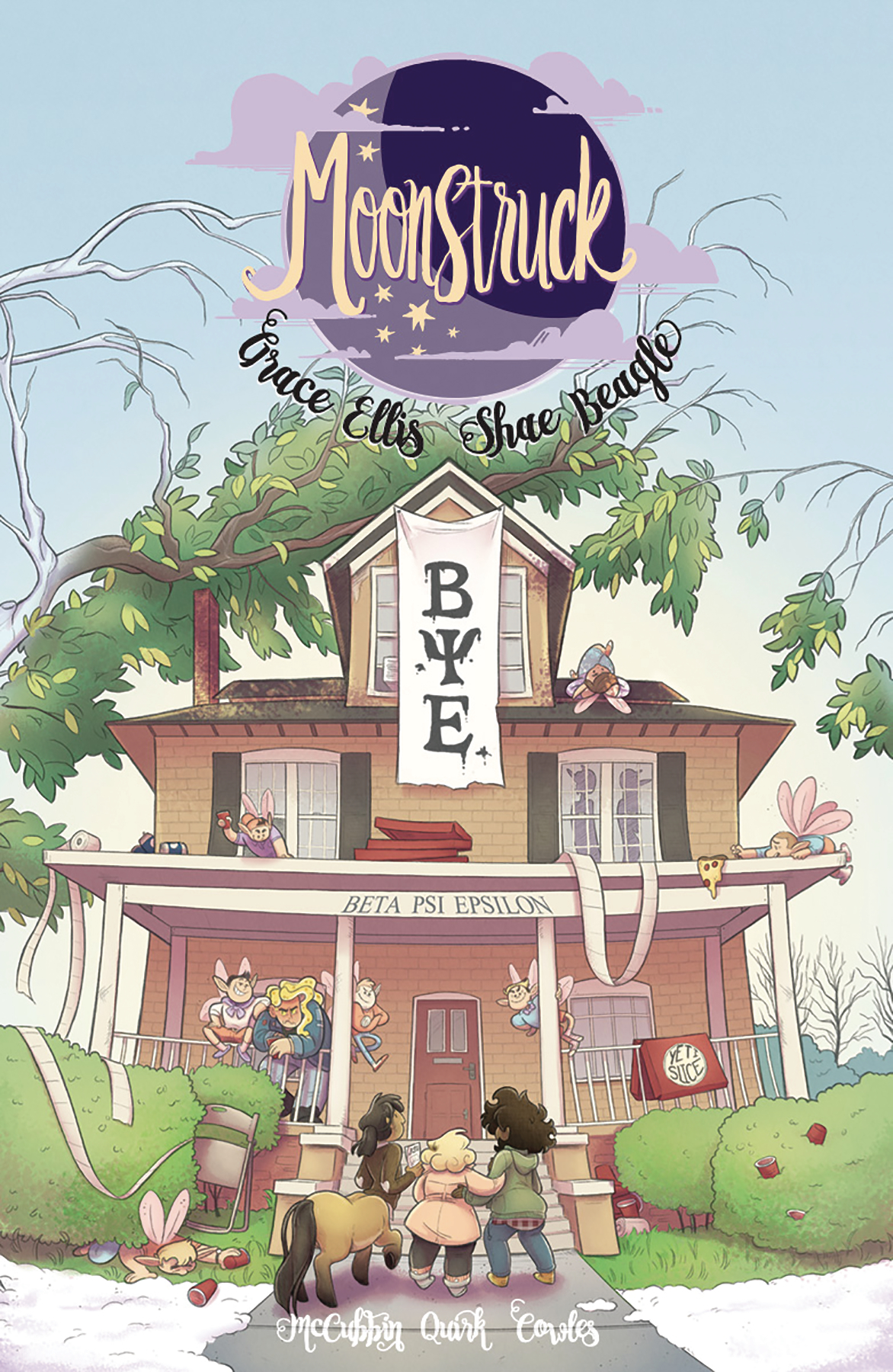 Welcome to the beginning of the second arc of MOONSTRUCK, that popular middle-grade / all-ages lesbian-werewolf-barista romance adventure you've been hearing so much about! Fresh off their latest hijinks, Julie and the gang try to unwind at a fraternity party hosted by a group of fairy bros. But like everything else in Blitheton, things are not as they first appear, and before you can say, "hey don't drink that or you'll be trapped in the fairy circle for all eternity," another round of magical hijinks has begun! This is a great place for new readers to jump into the story.