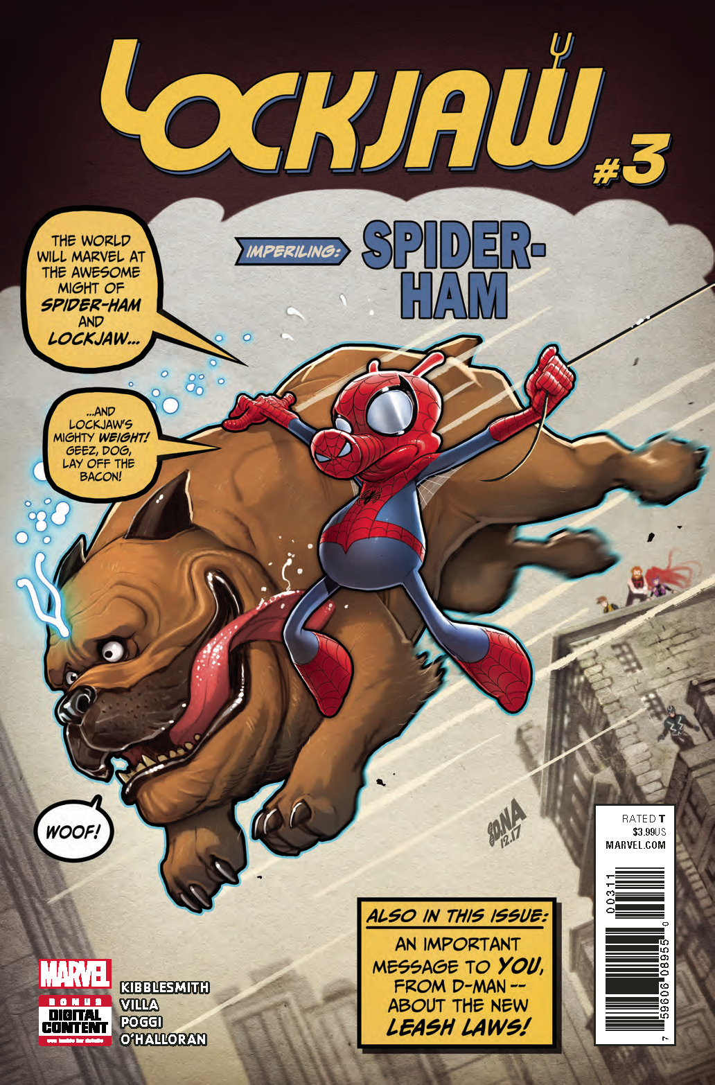 •  Peter Porker needs Lockjaw and D-Man's help. A terrible danger is building - and it's all wrapped up in Lockjaw's scattered siblings!