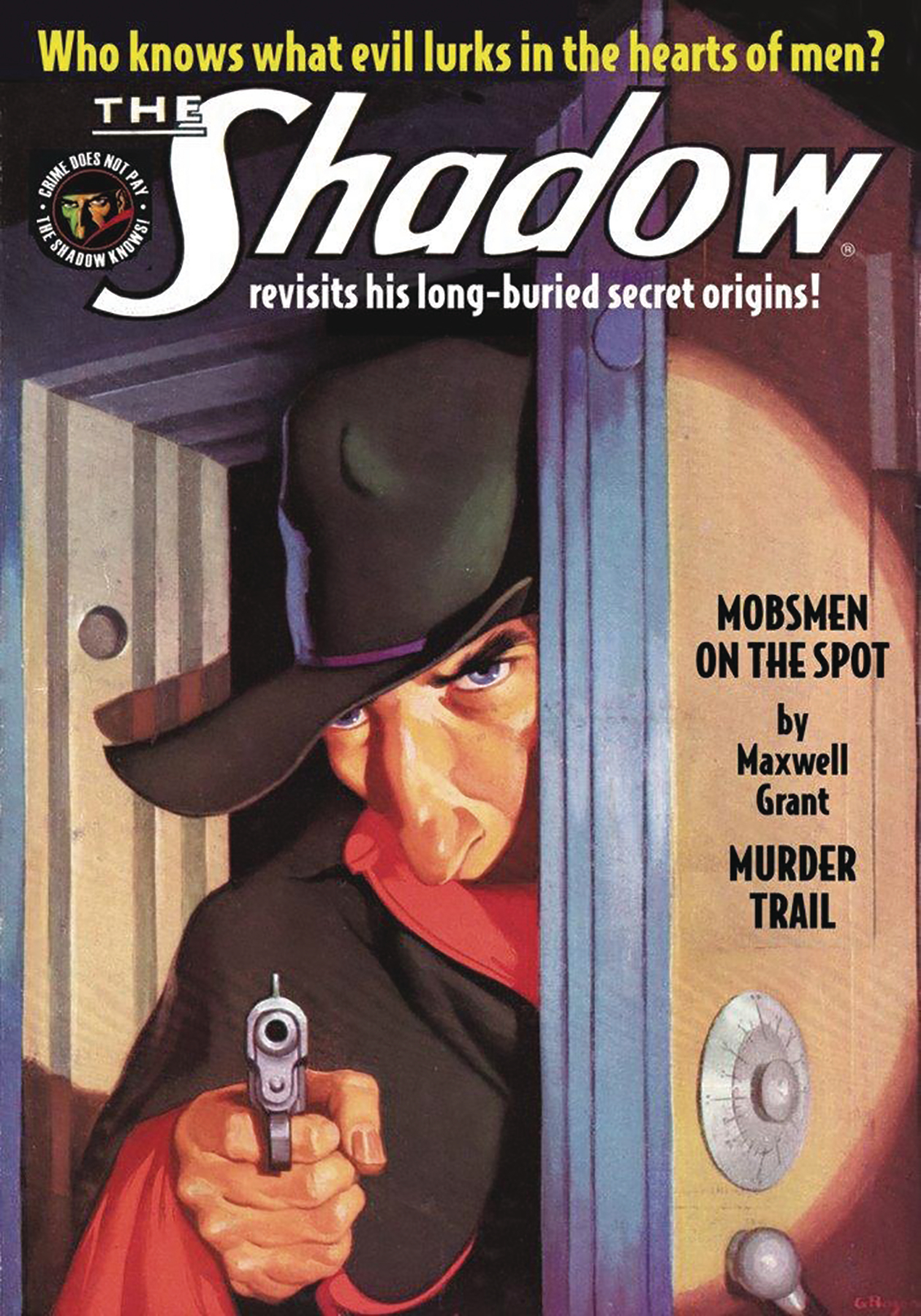 The Dark Avenger teams with an ally from his own wartime secret origins in thrilling pulp novels by Walter. B. Gibson. First, as rackets take over New York, The Shadow recruits wrongly convicted ex-con Cliff Marsland to put "Mobsmen on the Spot." Then, the Master of Darkness and Marsland follow a "Murder Trail" of stolen millions to unmask a hidden mastermind!