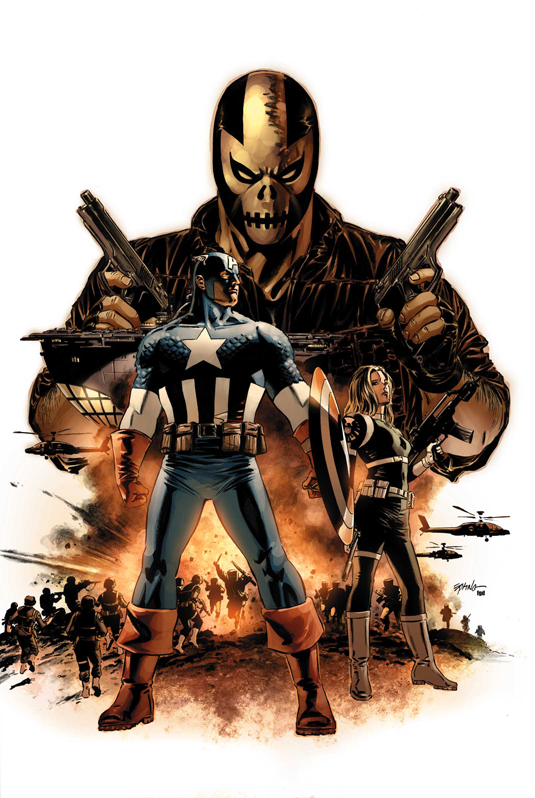 As Crossbones and the Red Skull's daughter SIN carve a path of chaos and destruction across the U.S.A., Cap and S.H.I.E.L.D. Agent 13 head to the American heartland on a tip, and stumble across much more than they bargained for--like a secret AIM cadre and a lot of secrets! The first of an action-packed two-parter from Ed Brubaker and Mike Perkins.