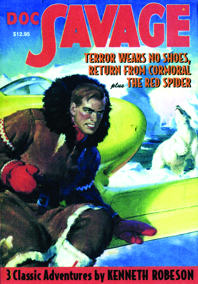 The 75th birthday of the pulp era's greatest superhero is commemorated with a unique triple novel edition! In "Terror Wears No Shoes," Doc Savage journeys to Hong Kong to prevent a deadly germ warfare attack against the United States. Then the Man of Bronze penetrates the Iron Curtain in "The Red Spider," a Cold War thriller that was "lost" until 1978, and showcases the unpublished art Edd Cartier created for the story in 1948. Finally, a scientist is able to predict the future after his "Return From Cormoral." This collector's item pulp reprint features the original color pulp covers by George Rozen and Walter Swensen, interior illustrations by Edd Cartier and Paul Orban, and historical articles by Will Murray.