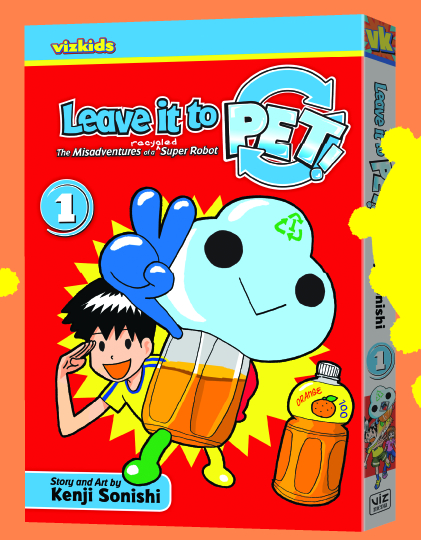 Pet (which stands for polyethylene terephthalate) was a simple plastic bottle until 9-year-old Norobu Yamada recycled him. Now Pet's a SUPER ROBOT programmed to protect Noboru at all costs! When Norobu faces danger, Pet transforms, plugs in, and jets to the rescue! Unfortunately, Pet's "help" usually does more harm than good, proving time and again that just because you call yourself "super" doesn't mean you have a clue.