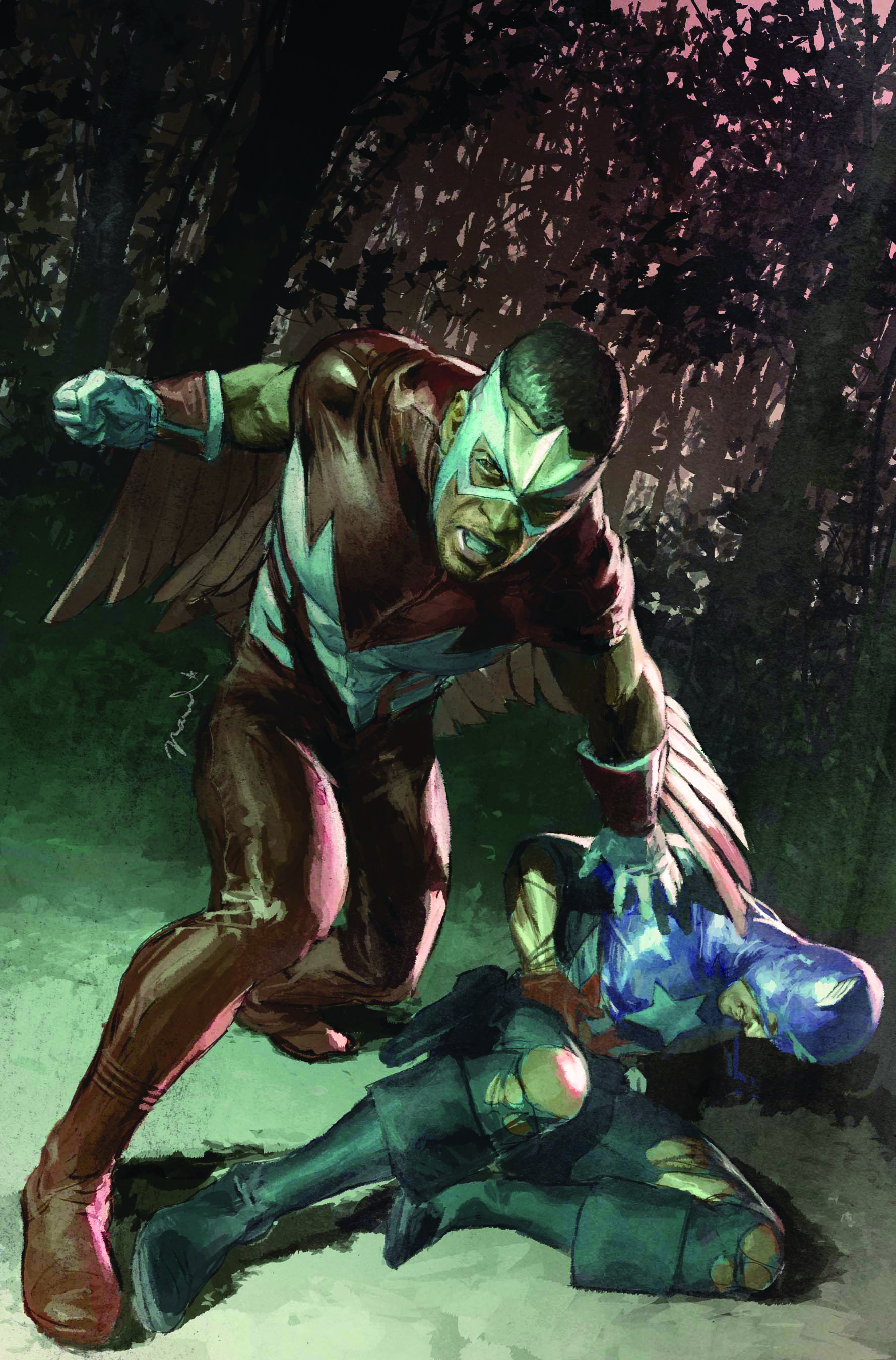 The penultimate chapter of TWO AMERICAS! As two Captain Americas clash in the heartland, the Falcon fights to stop a terrorist attack on American soil by the new Watchdogs! Plus, Nomad: Girl Without A World back-up by SEAN MCKEEVER and DAVID BALDEON.