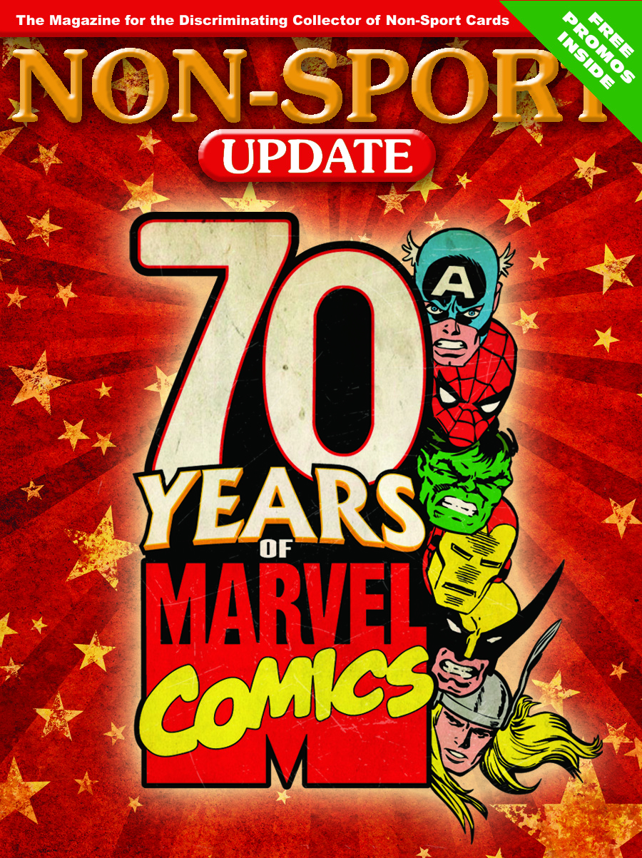 Non-Sport Update checks in with the movers and shakers to report what fans can expect from the new Marvel series. And, the spring Philly Non-Sports Card show is always popular after the long winter on the east coast, so read all about past Philly shows and get ready for the 52nd show. Plus, all the columns you've come to rely on including Non-Sport Shorts Timeline, New & Noteworthy, the Promo Column, and Cards Online.
