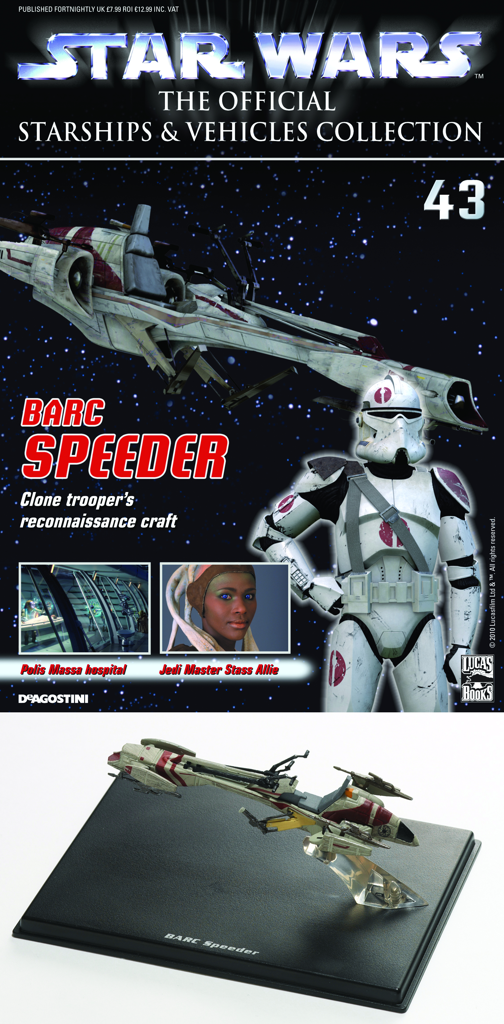 The Star Wars: The Official Starships and Vehicles Collection Magazine brings fans superbly detailed, painted metal models of the most amazing starships and land vehicles from George Lucas' mythic Star Wars films. Each comes with a copiously illustrated magazine that relates the history of the vehicle, its pilots or crew, and full technical specifications. Readers will also uncover information on the other fascinating craft from the Expanded Universe of the novels and comics, plus the inside story on the making of the films. Choose from the Sith Infiltrator (#17), the Jedi Starfighter (#18), the Barc Speeder (#43), and the Swoop Bike (#44).
