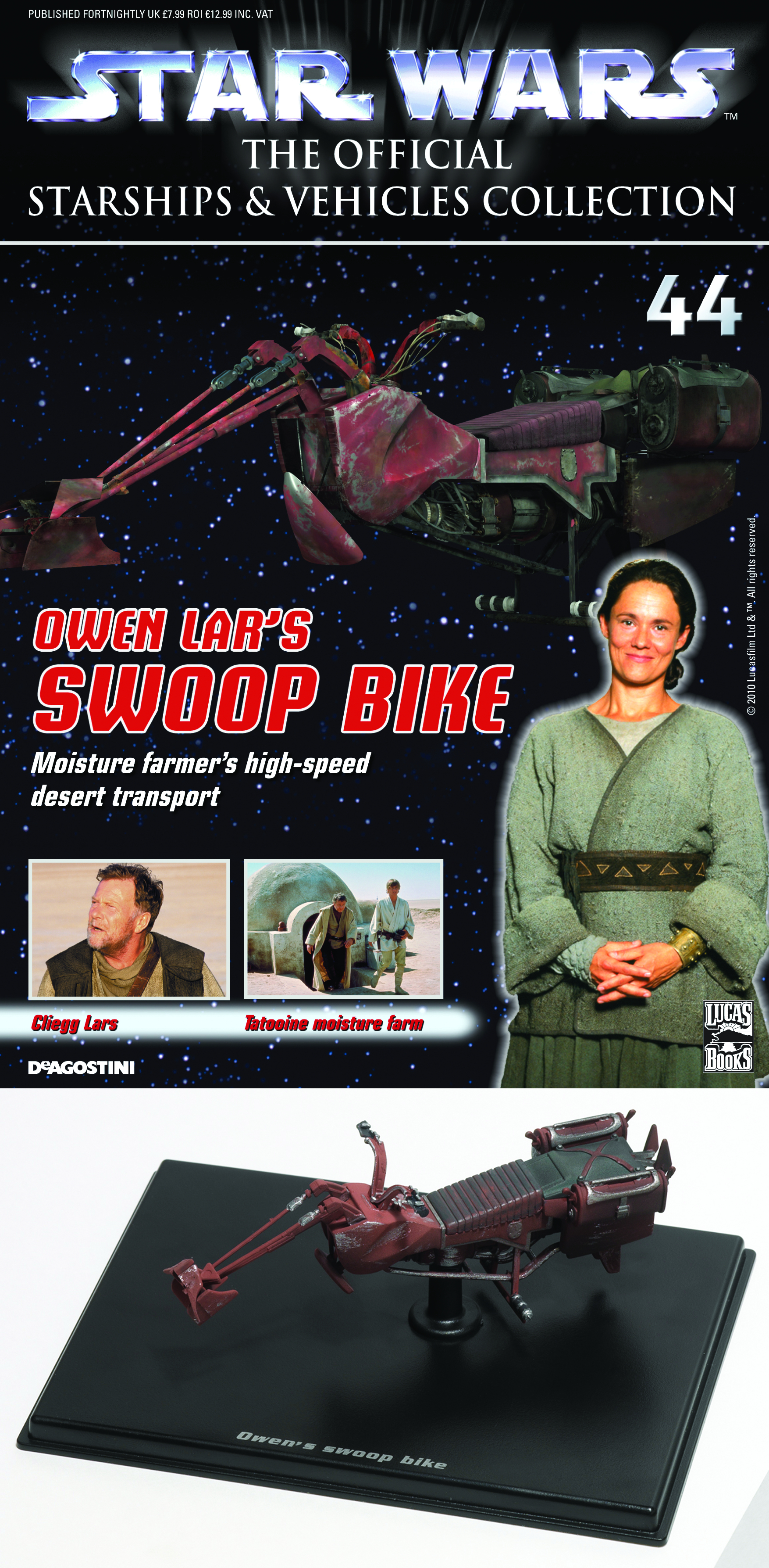 The Star Wars: The Official Starships and Vehicles Collection Magazine brings fans superbly detailed, painted metal models of the most amazing starships and land vehicles from George Lucas' mythic Star Wars films. Each comes with a copiously illustrated magazine that relates the history of the vehicle, its pilots or crew, and full technical specifications. Readers will also uncover information on the other fascinating craft from the Expanded Universe of the novels and comics, plus the inside story on the making of the films. Choose from the Sith Infiltrator (#17), the Jedi Starfighter (#18), the Barc Speeder (#43), and the Swoop Bike (#44).