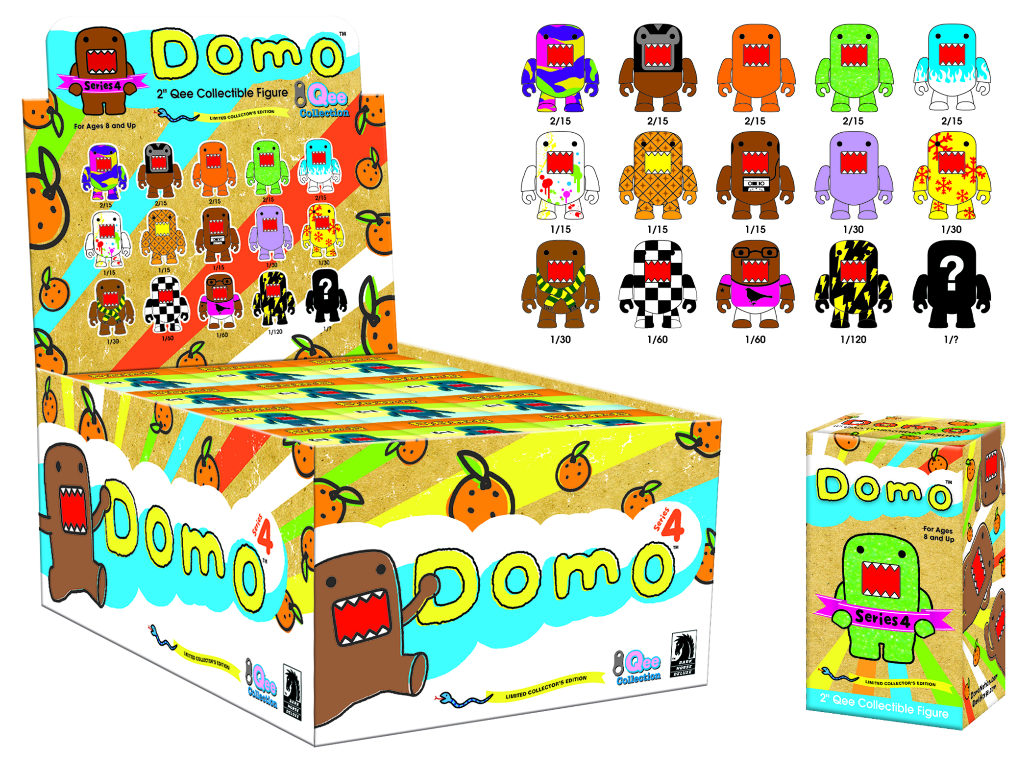 Domo continues to enjoy the Qee treatment from Dark Horse Comics and Hong Kong's Toy2R. These popular 2" Qee figures have continually sold out, appearing in stores and galleries worldwide, and this fourth series comes in blind mystery box packaging, so you don't know which cool Domo design you'll get!