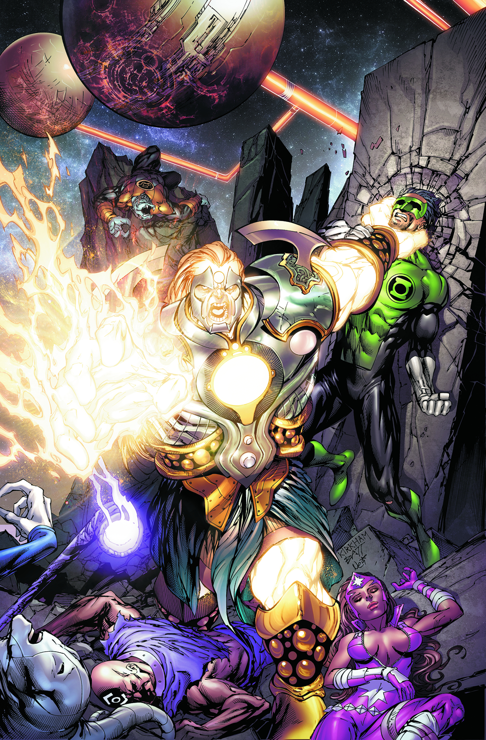 World breaker and sun killer: Invictus has come to remake us all into his vision of perfection - he just needs to burn everything in his path first. In the New Guardians' most desperate hour, Red Lantern Bleez returns, but is even her rage a match for the wrath of a living god? All this and the origin of Invictus - and how it all ties back to Larfleeze!