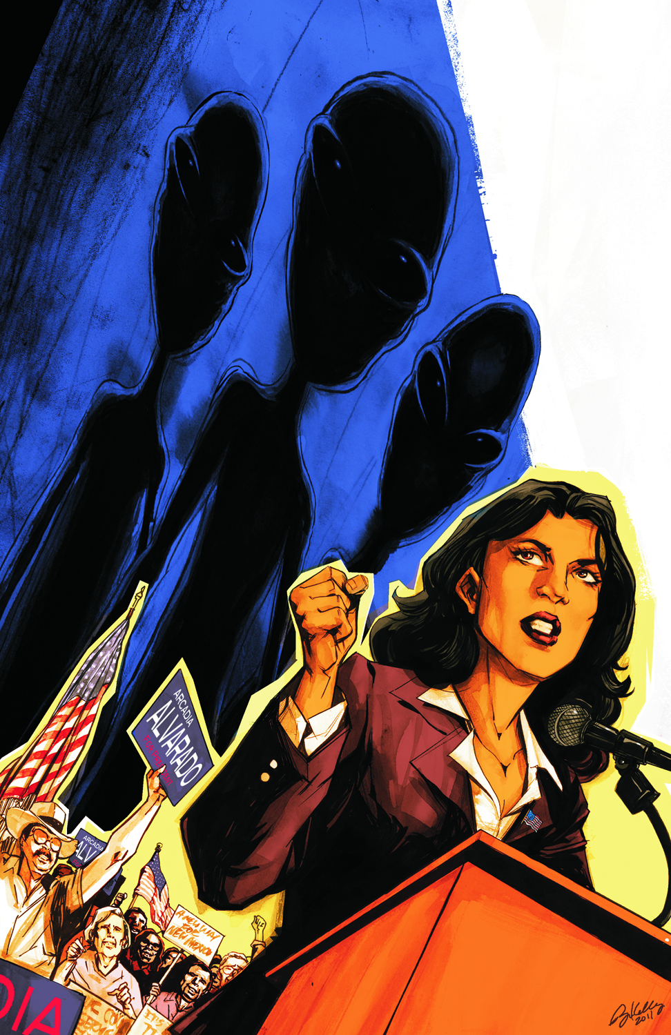 Arcadia's quest is at the heart of this new monthly series from writer Paul Cornell (DEMON KNIGHTS, ACTION COMICS, Doctor Who) and artist Ryan Kelly (NEW YORK FIVE, NORTHLANDERS). With the help of her quirky staff, Arcadia will pursue the truth of her abduction into danger, mystery and awe. SAUCER COUNTRY is a dark thriller that blends UFO lore and alien abduction with political intrigue, all set in the hauntingly beautiful Southwest.