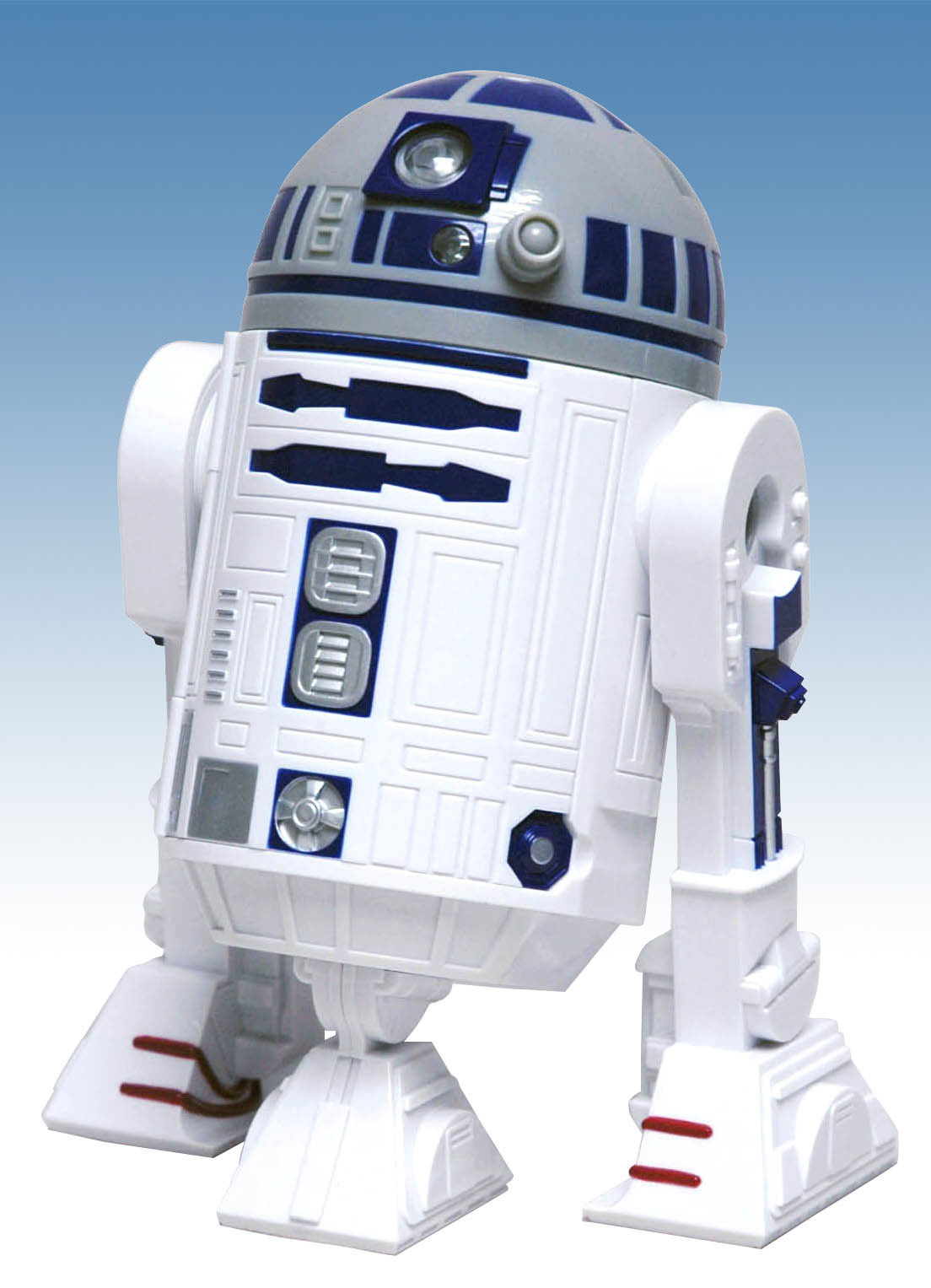 R2-D2 is a droid with a lot of secrets hidden inside him, and now he's got your change hidden inside him, as well! Deposit coins to hear him whistle and beep!