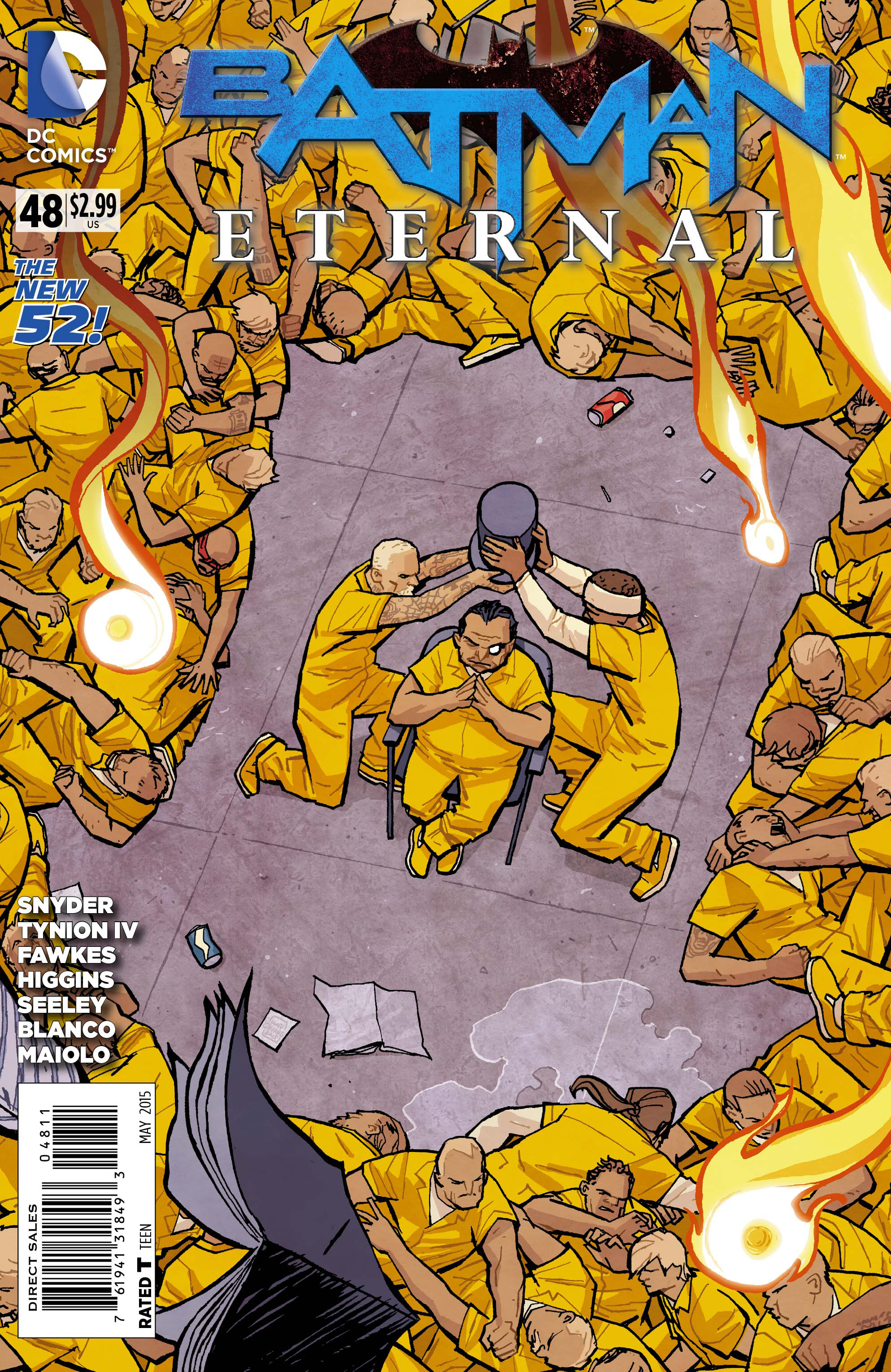 This month in BATMAN ETERNAL: The epic Bat-story over a year in the making comes to a stunning end! Gotham City is in flames! Villains are running wild in the streets! Bat-tech has been corrupted! And the mastermind behind it all has put a knife in Batman's ribs! How will the Dark Knight put an end to this nightmare...and how will it shape the face of Gotham City to come?