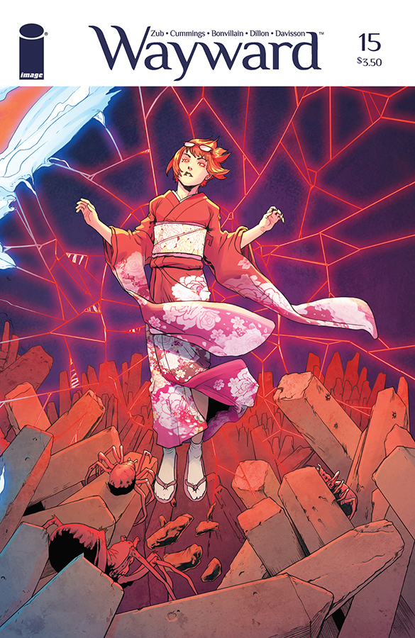 Cover A is part five of a five-part panorama. Buy all five issues of this story arc to fit together into a massive WAYWARD illustration.