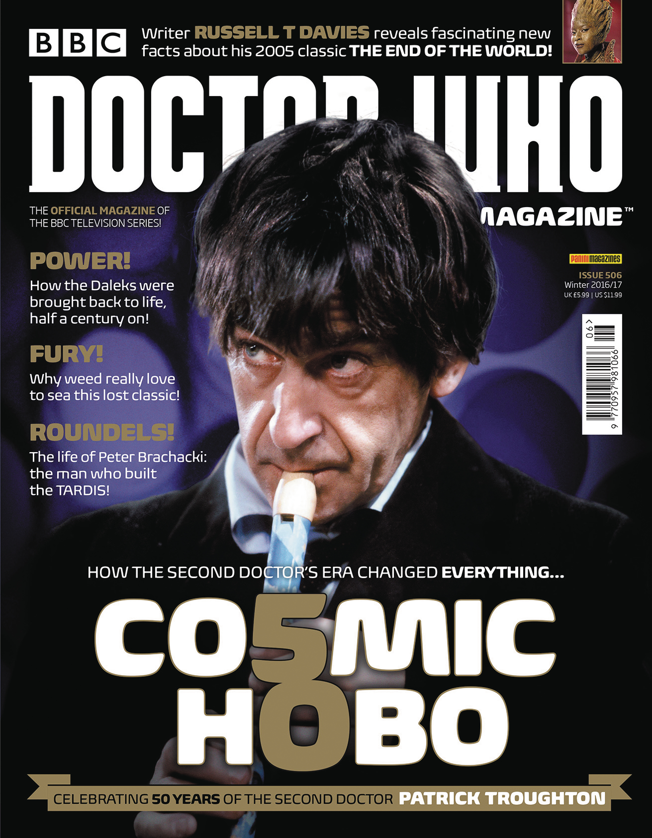 DWM looks at the new season starring Peter Capaldi as the Twelfth Doctor and Pearl Mackie as the Doctor's new traveling companion, Bill; the comic strip continues; readers' questions are answered; "The Fact of Fiction" puts another story under the microscope; all the latest merchandise is previewed and reviewed; plus in-depth interviews and features, news, prize-winning competitions and much, much more!